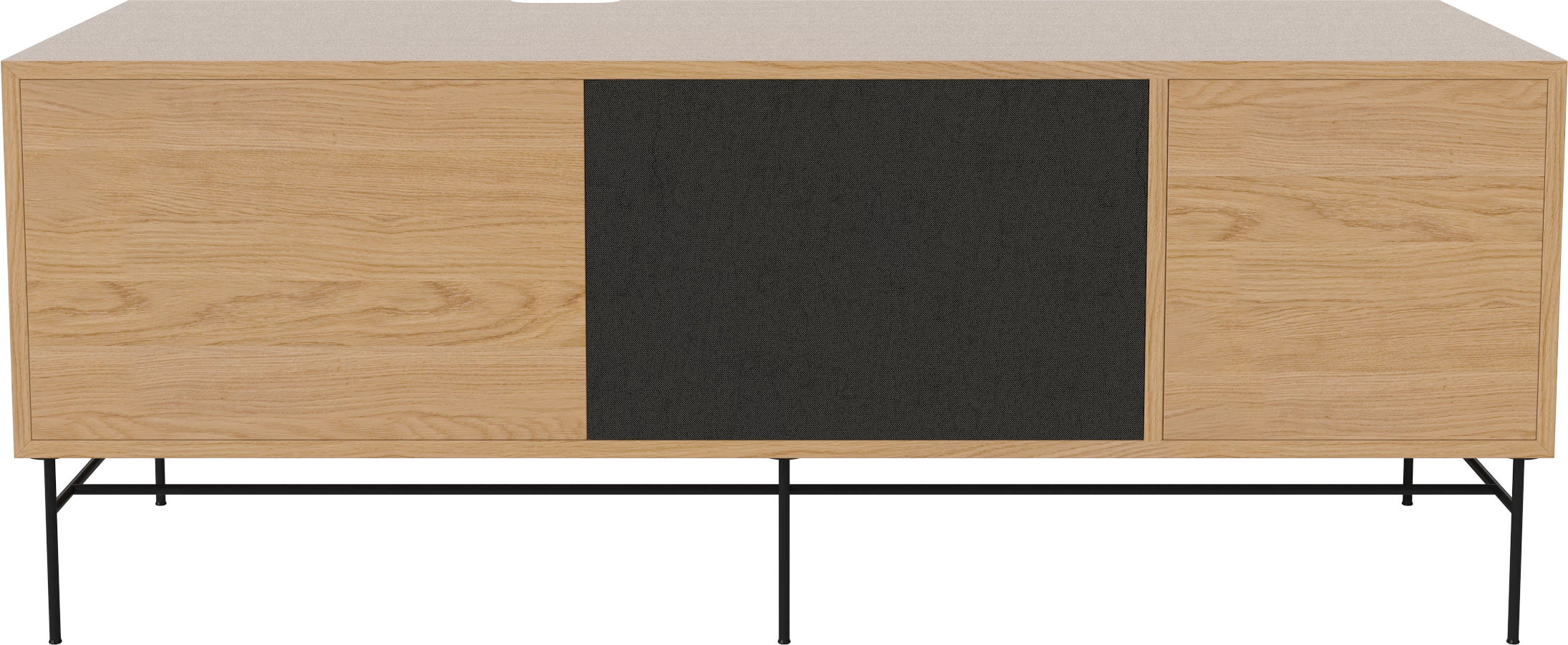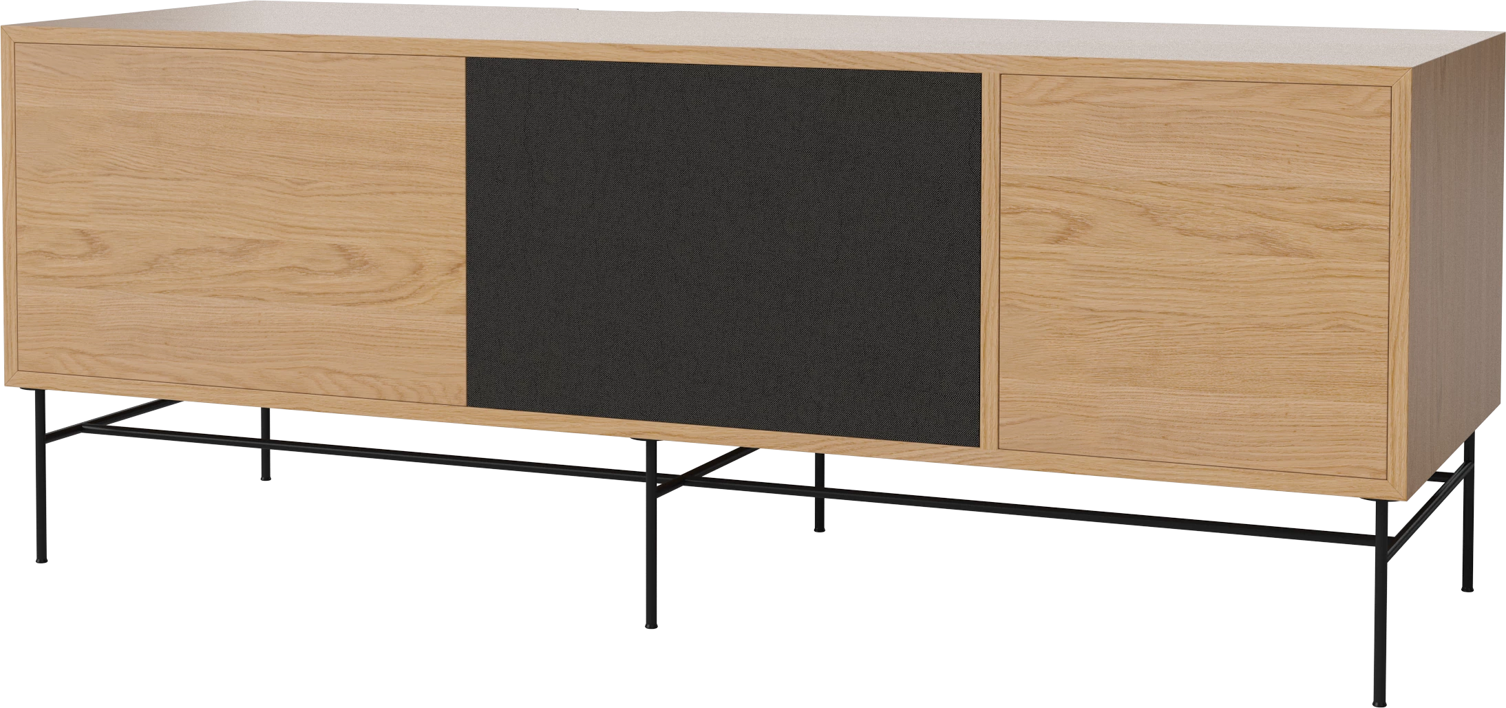 dąb naturalny olejowany, czarna podstawa, front czarna tkanina i dąb naturalny