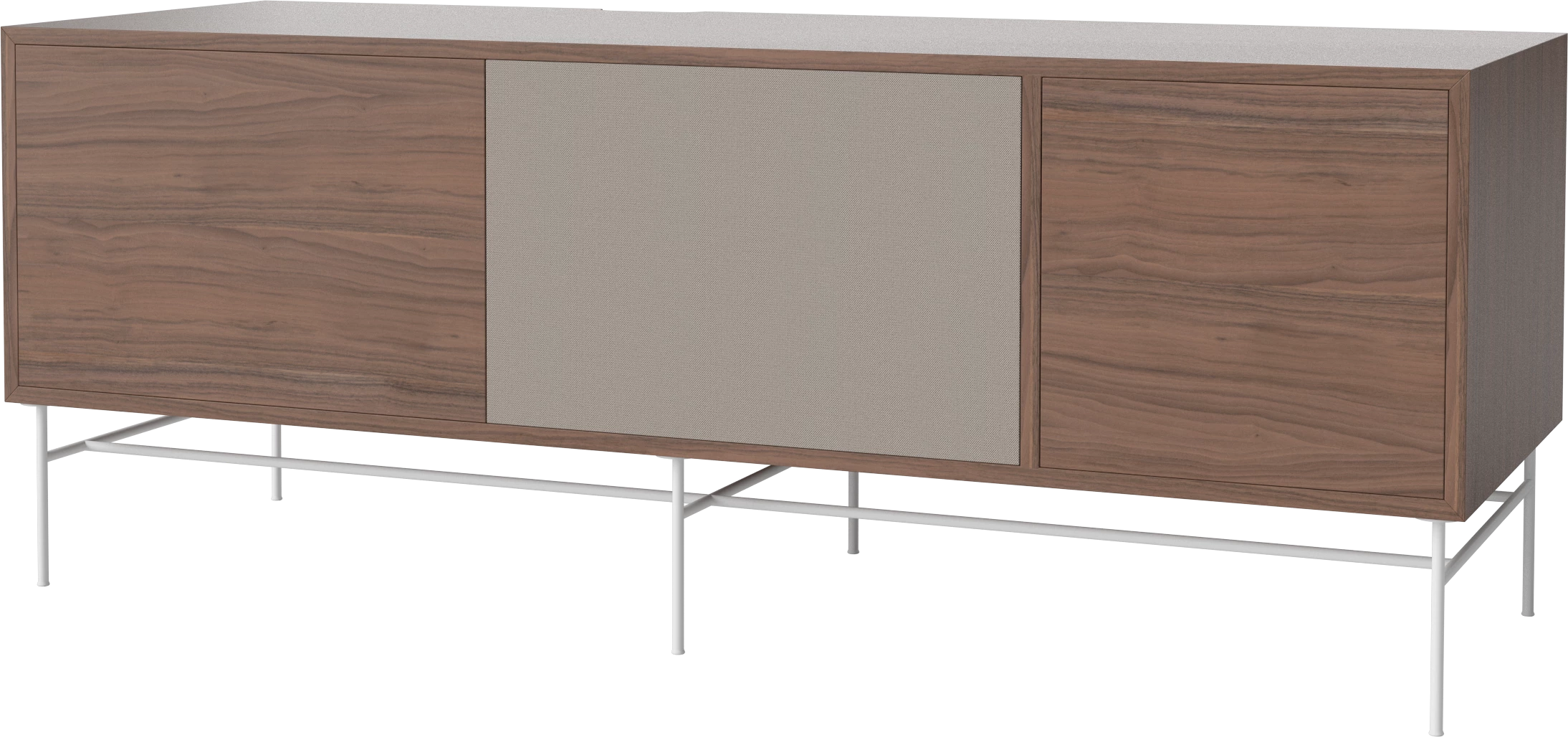 orzech naturalny olejowany, biała podstawa, front szara tkanina i orzech naturalny