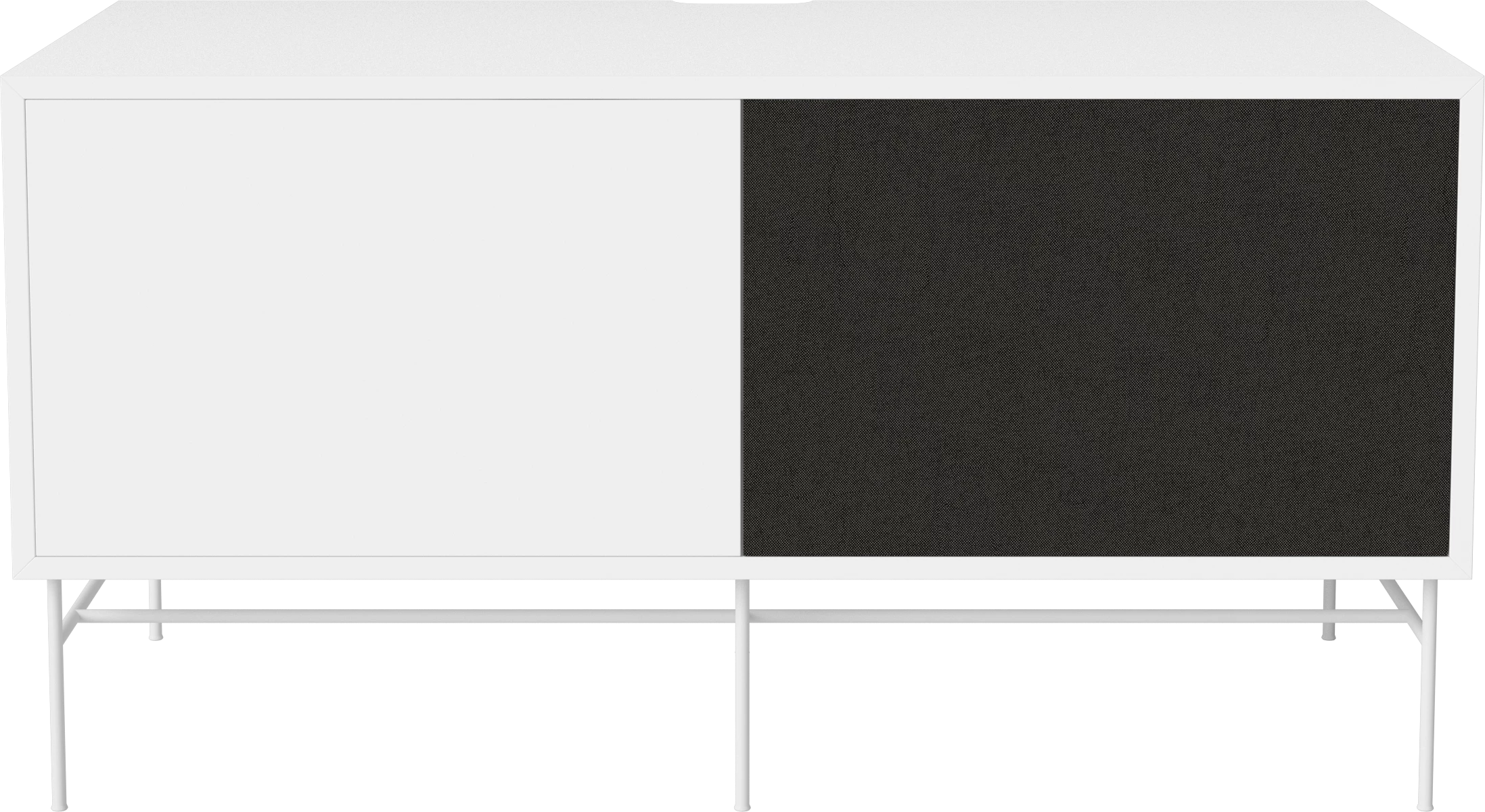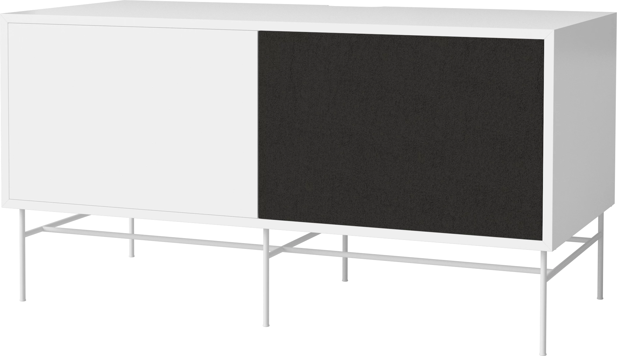 biały korpus, biała podstawa, fronty czarna tkanina i biały MDF