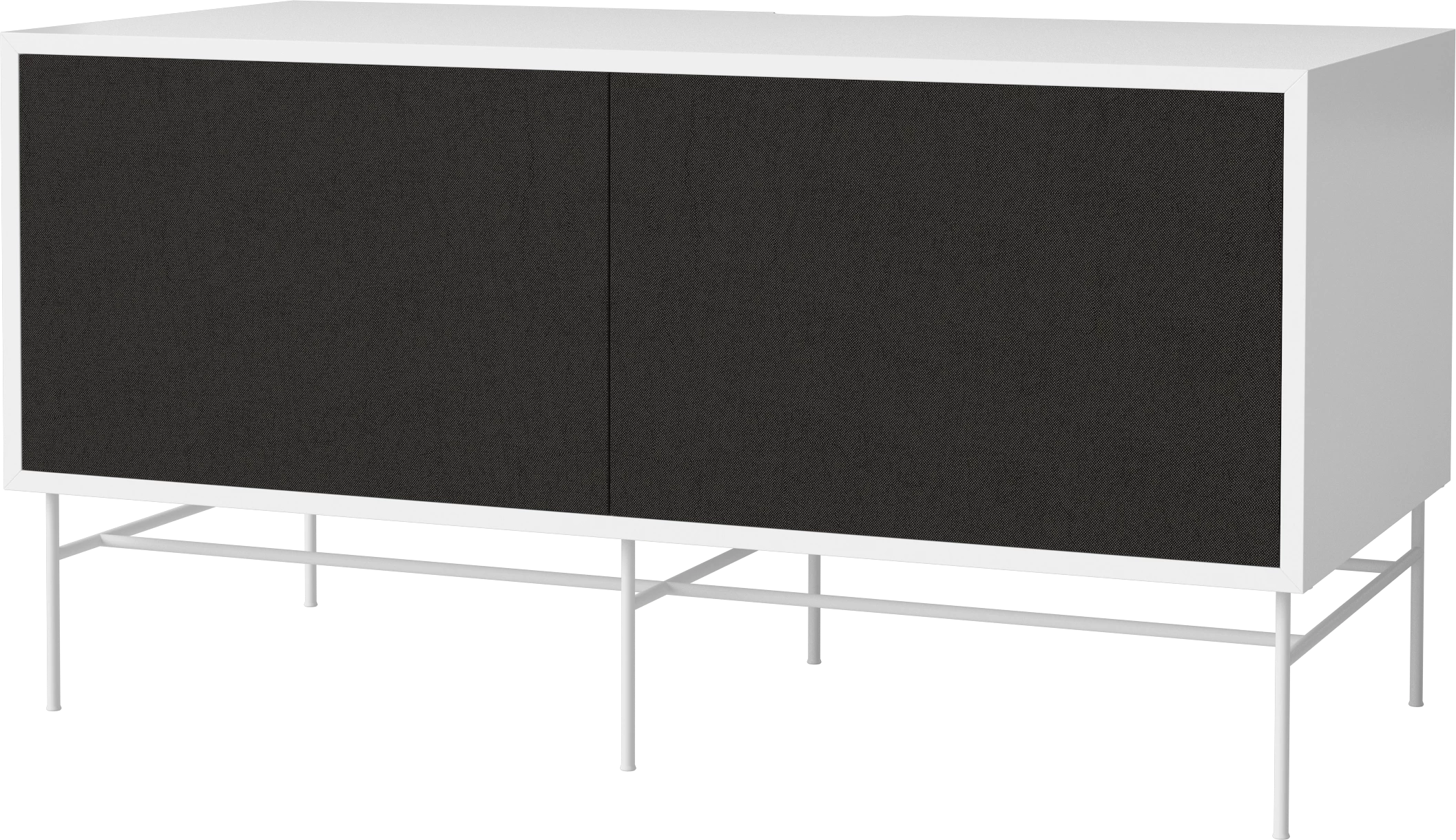 biały korpus, biała podstawa, czarne fronty z tkaniny