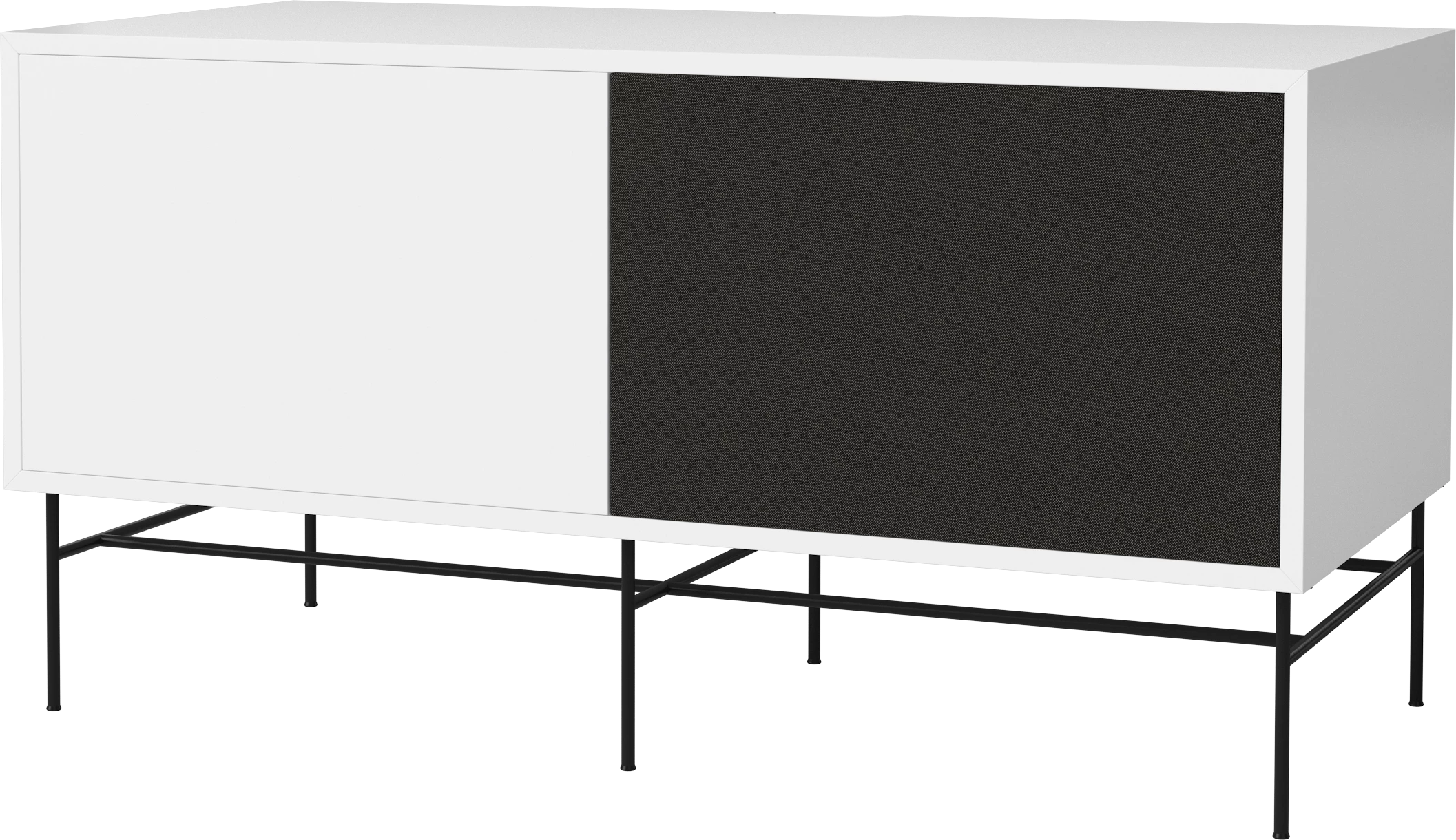 biały korpus, czarna podstawa, fronty czarna tkanina i biały MDF