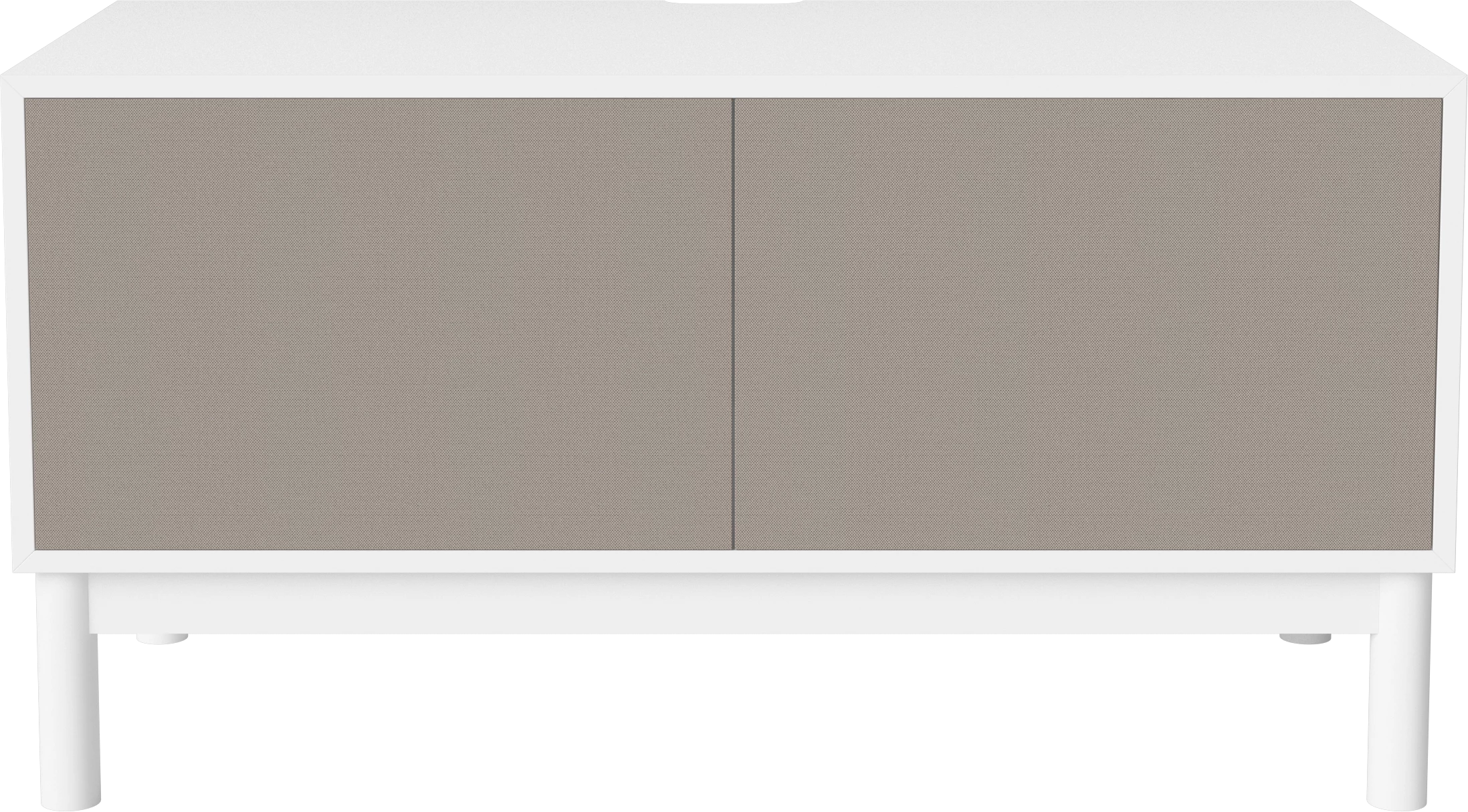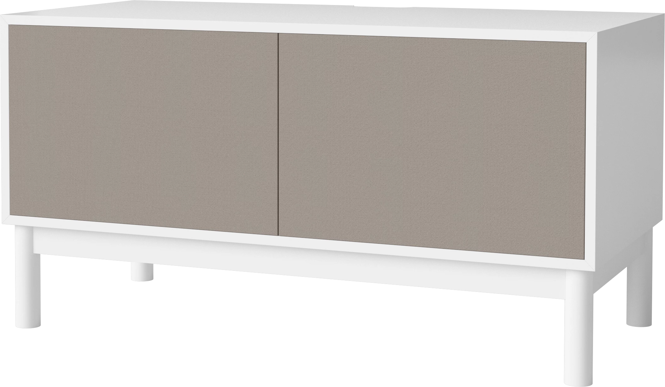 biały korpus, biała dębowa podstawa, szare fronty z tkaniny