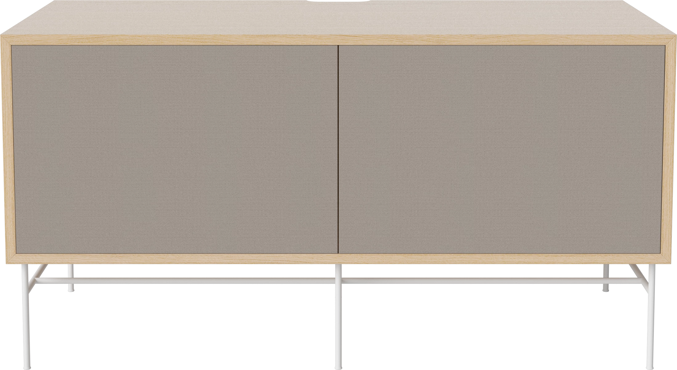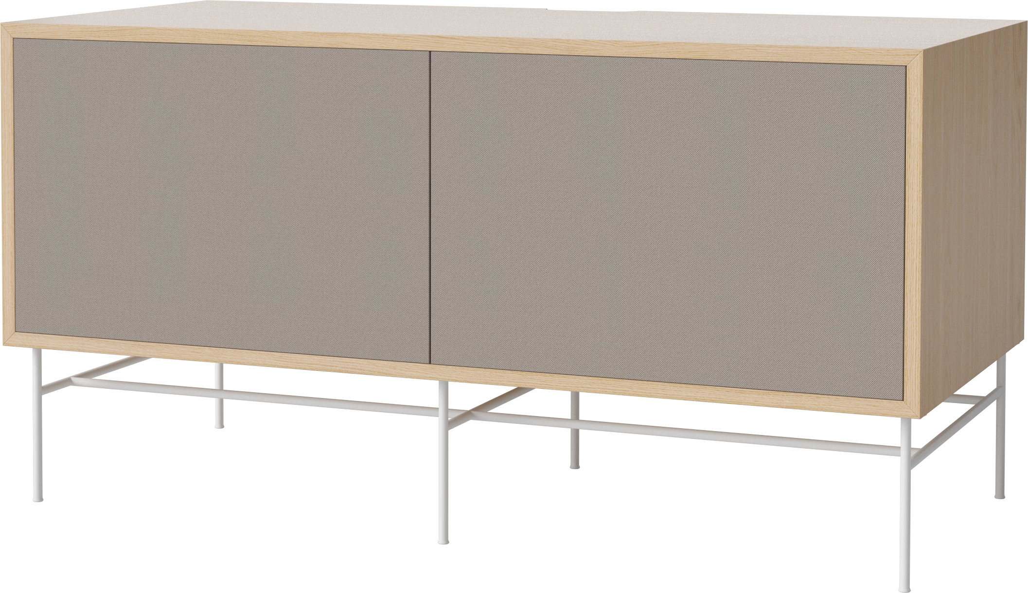 dąb bielony olejowany, biała podstawa, szare fronty z tkaniny