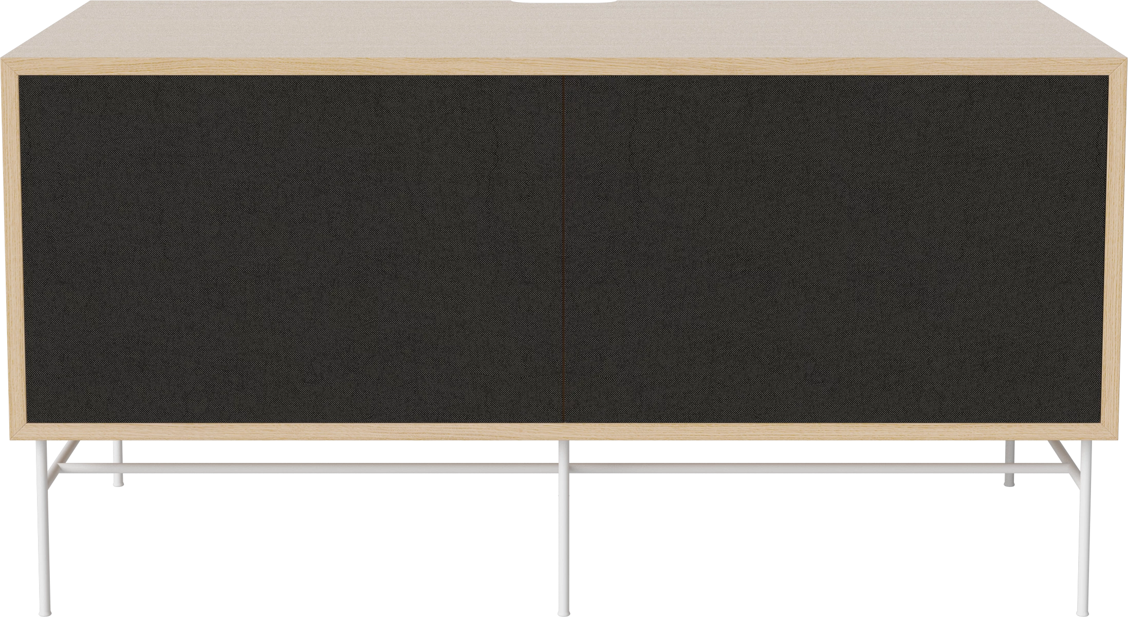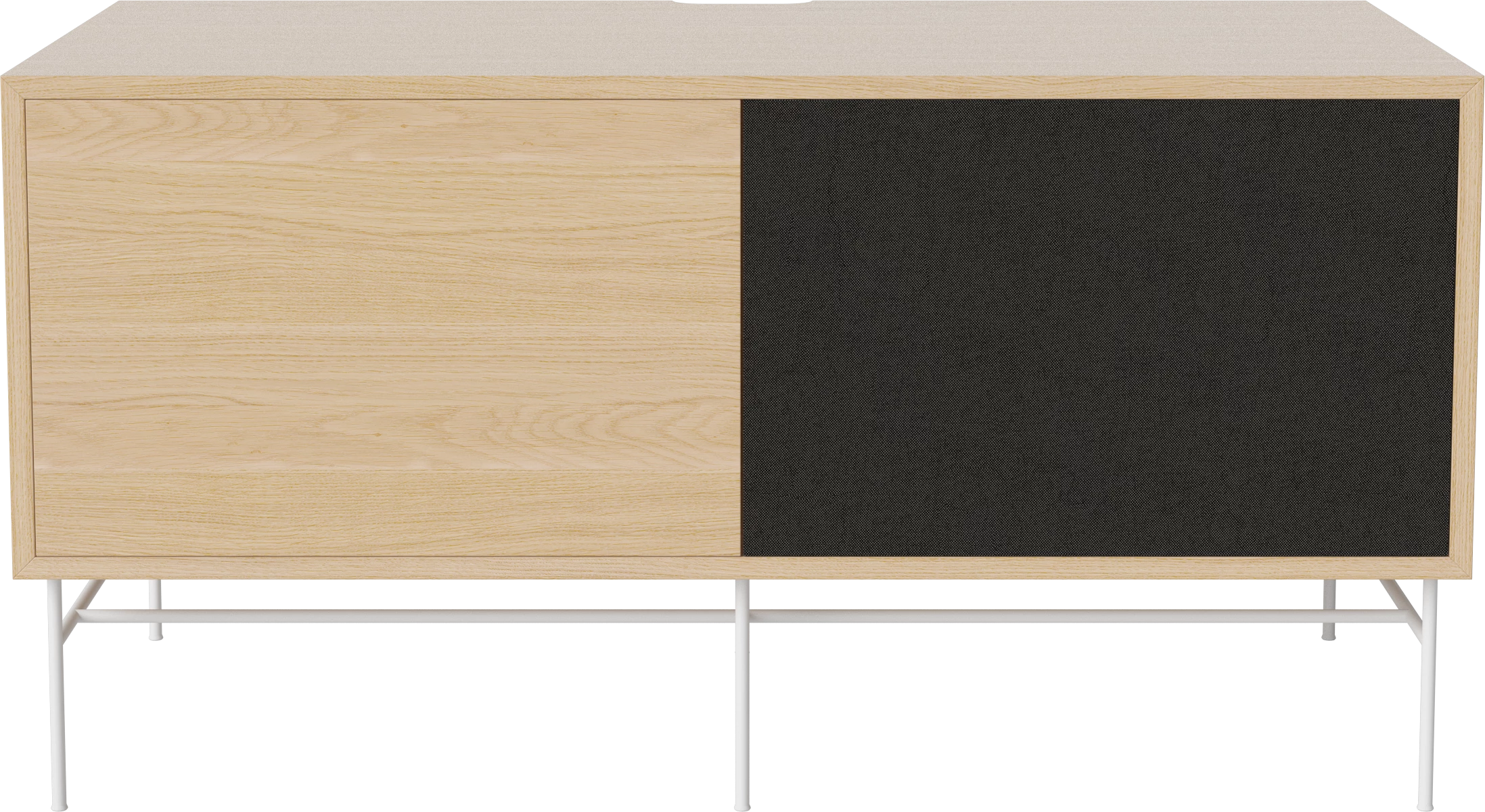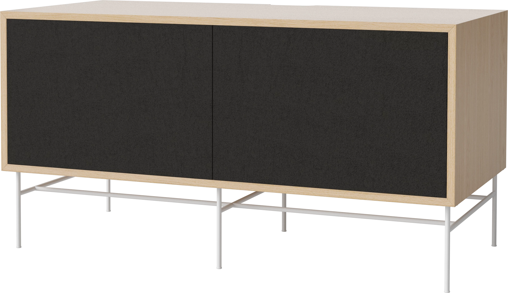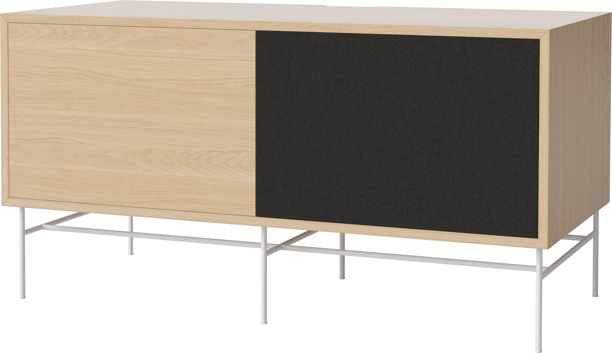 dąb bielony olejowany, biała podstawa, fronty czarna tkanina i dąb bielony