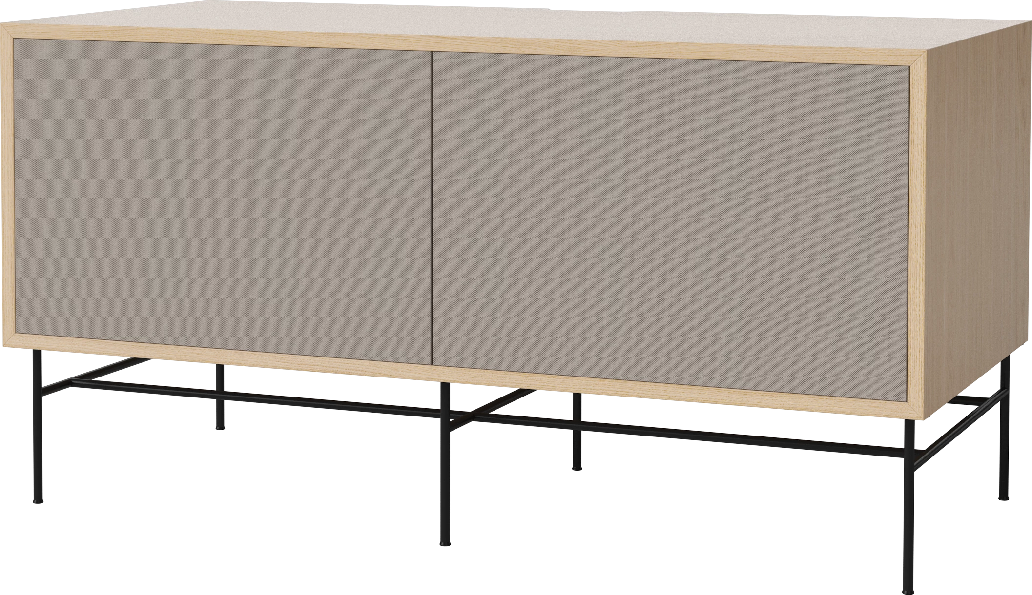 dąb bielony olejowany, czarna podstawa, szare fronty z tkaniny