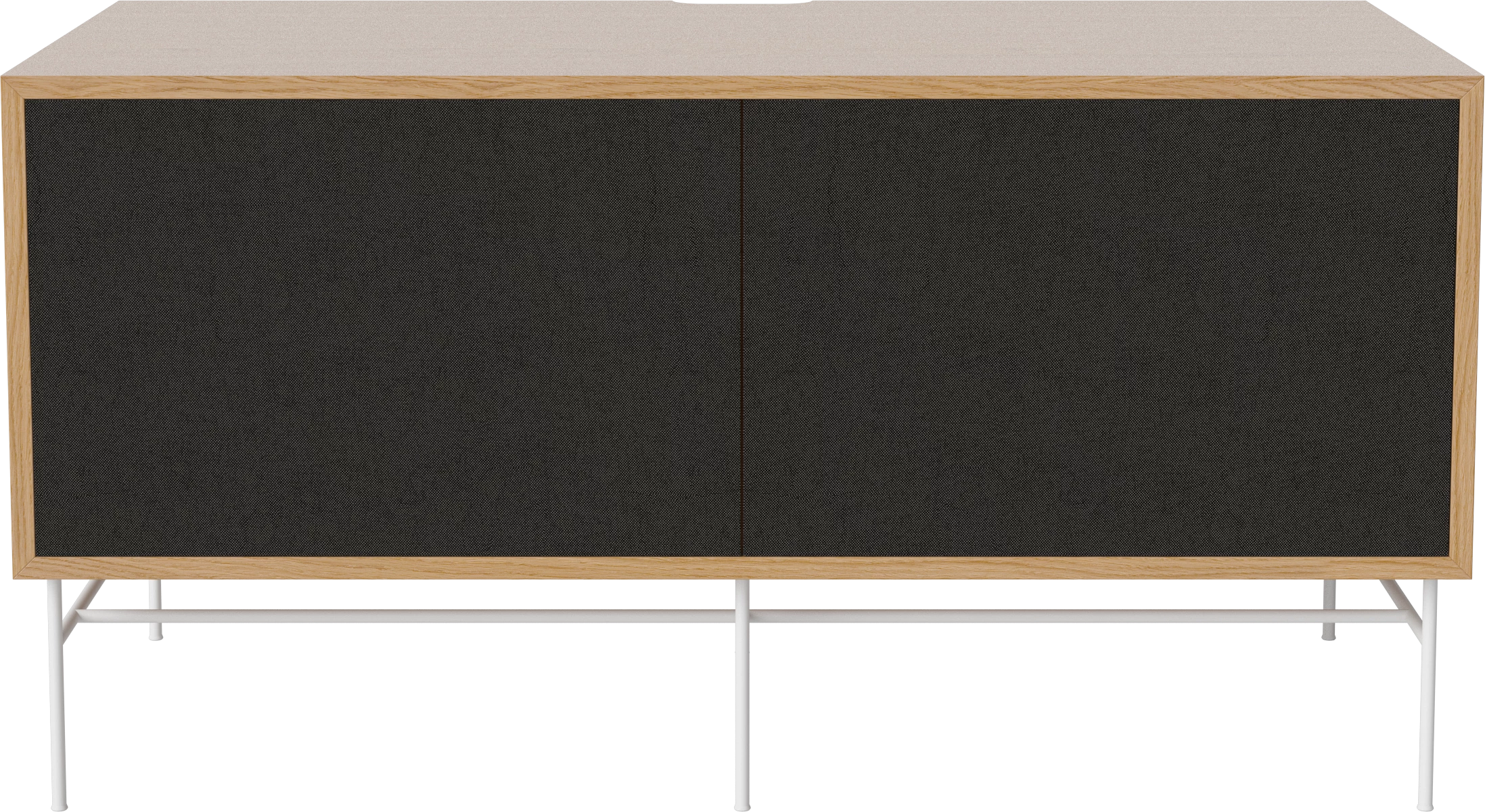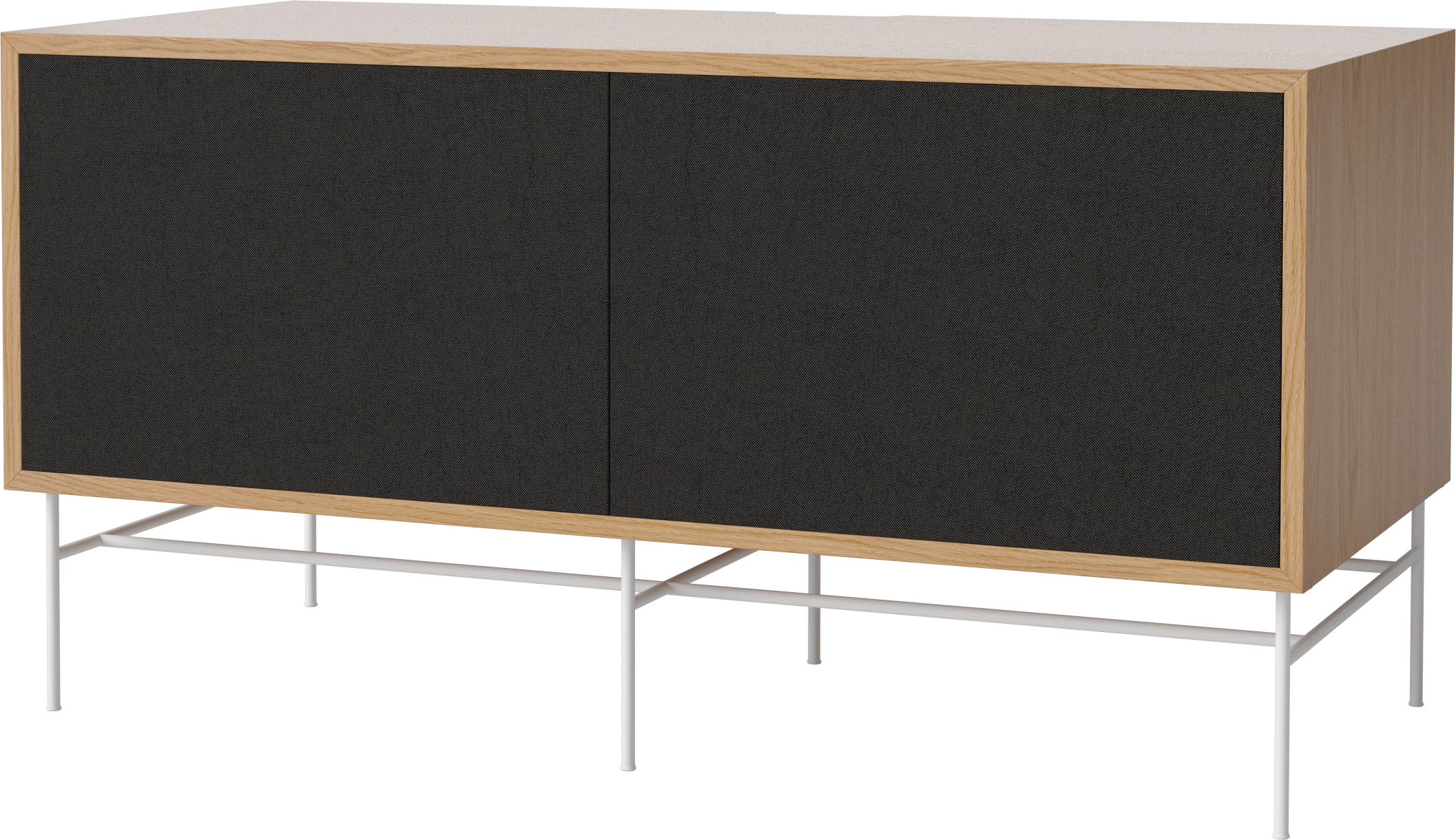 dąb naturalny olejowany, biała podstawa, czarne fronty z tkaniny