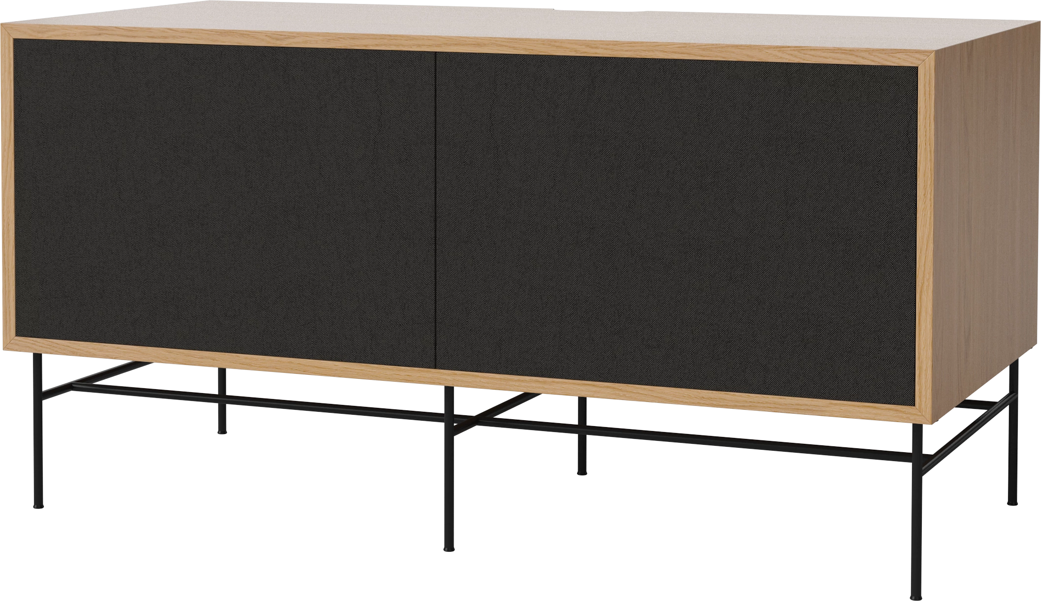 dąb naturalny olejowany, czarna podstawa, czarne fronty z tkaniny