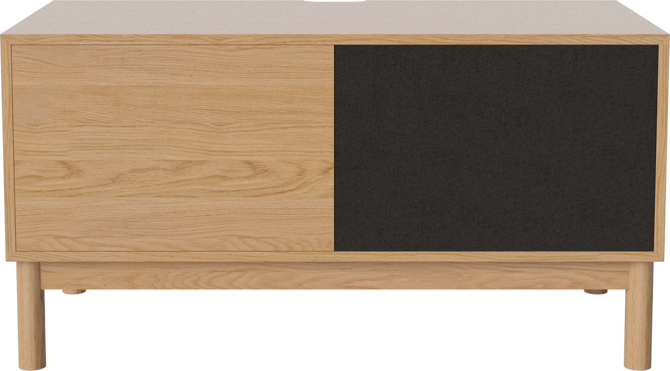 dąb naturalny olejowany, dębowa podstawa, front czarna tkanina i dąb naturalny