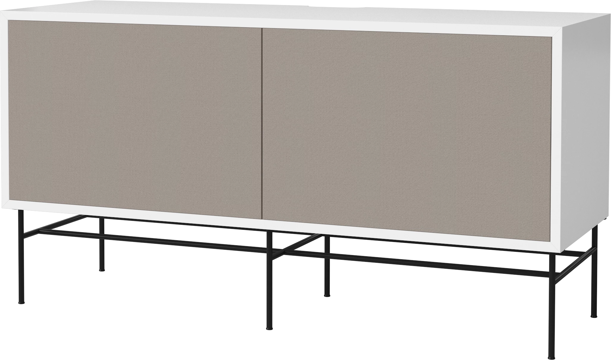 płyta MDF lakierowana na biało, czarna podstawa, front szara tkanina