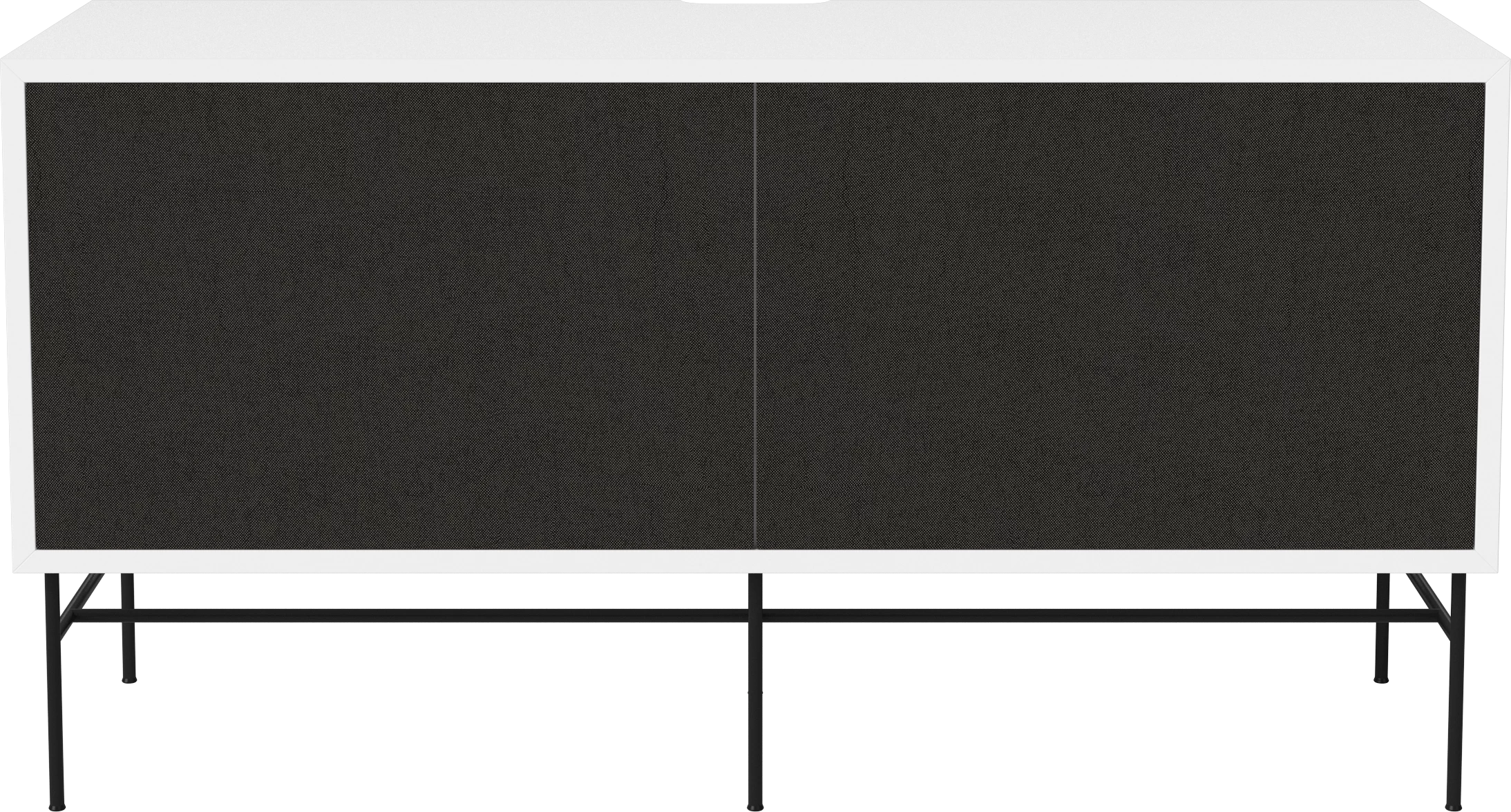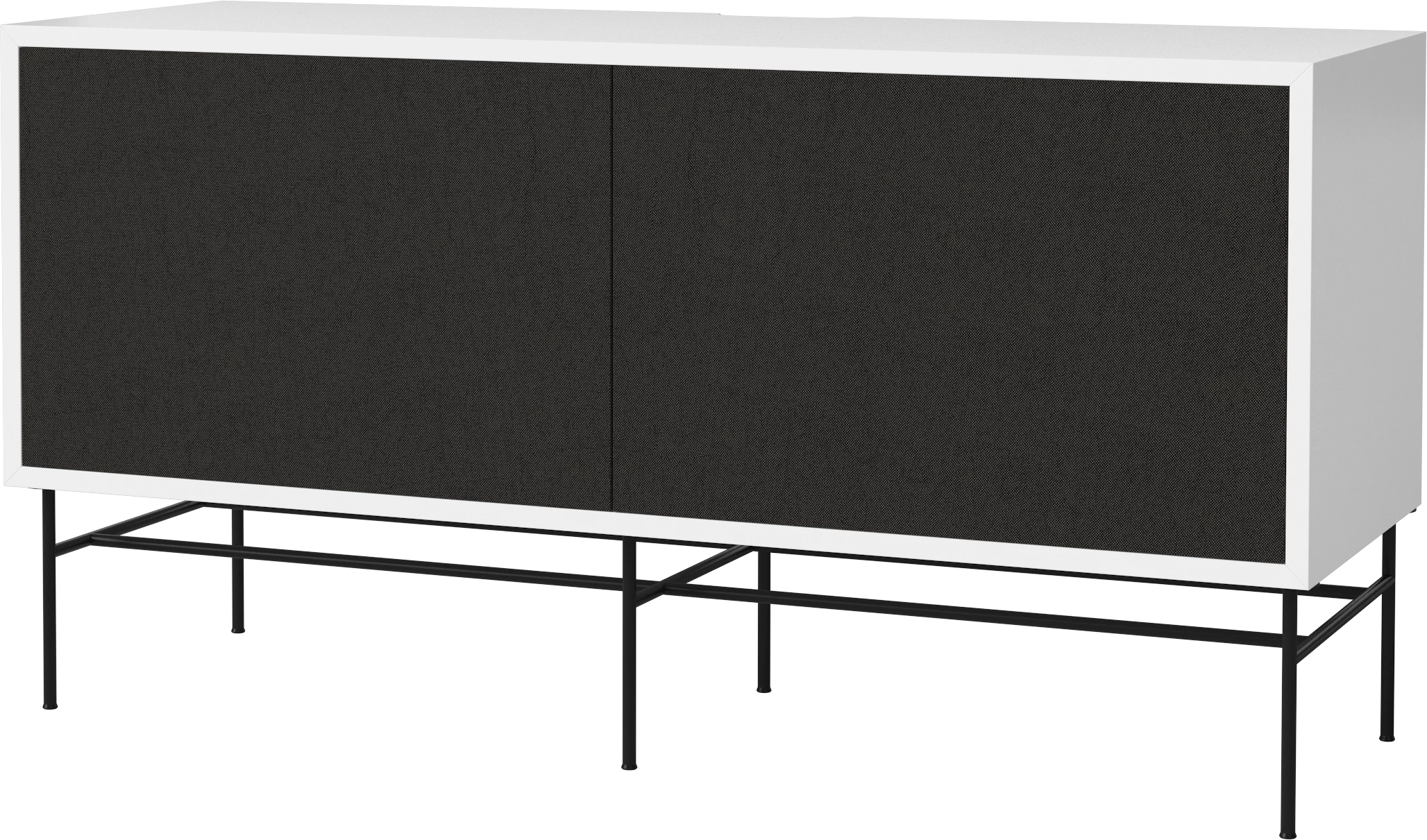 płyta MDF lakierowana na biało, czarna podstawa, front czarna tkanina