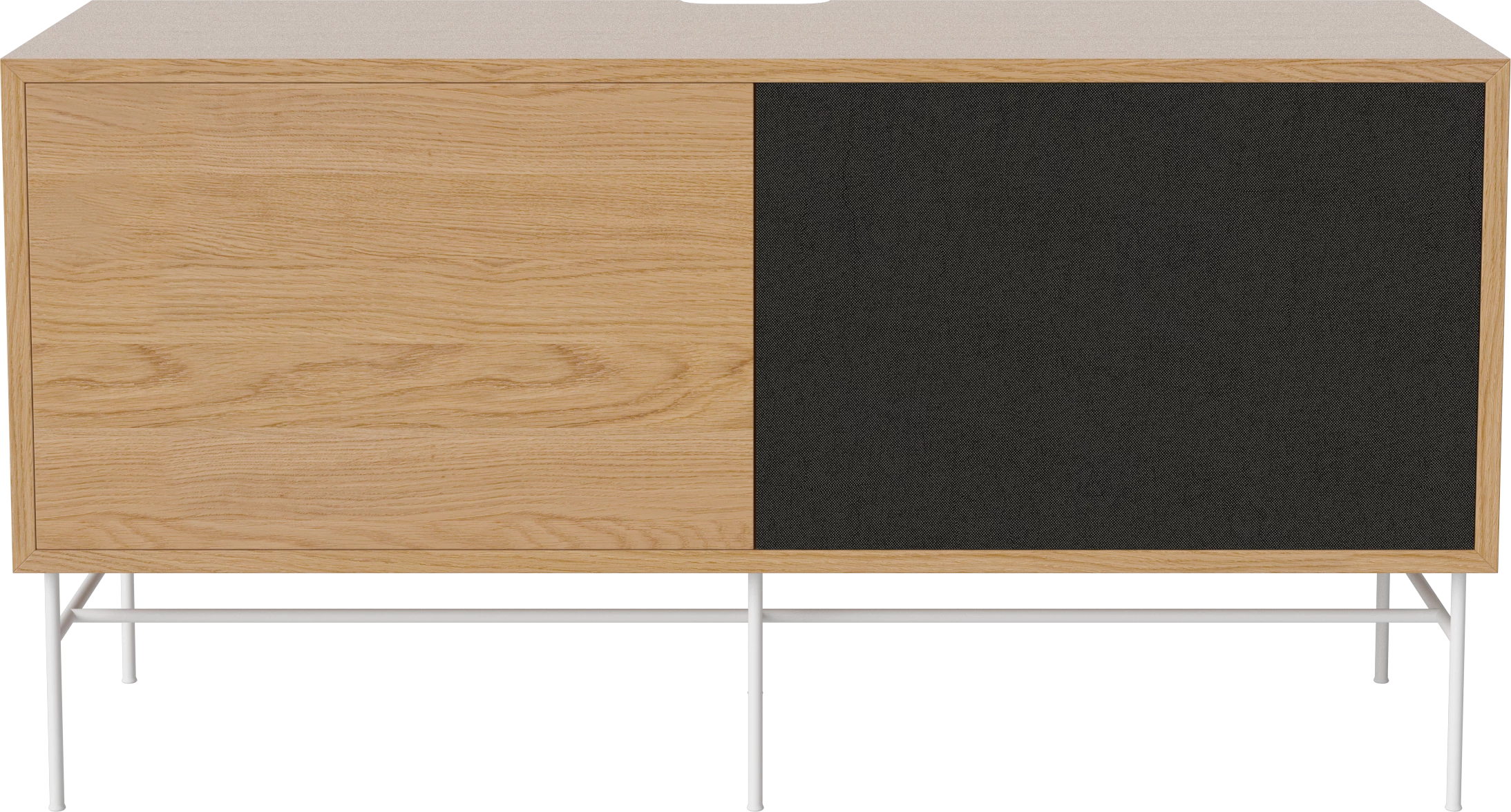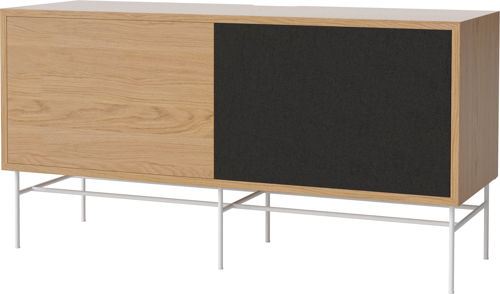 dąb naturalny olejowany, biała podstawa, front dąb naturalny / czarna tkanina