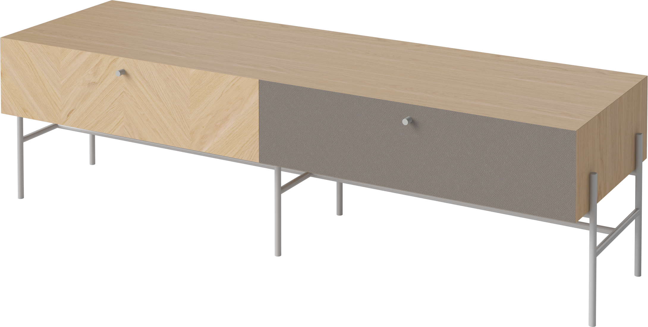 BOLIA szafka pod tv/hi-fi LUXE dąb bielony / szary front prawy