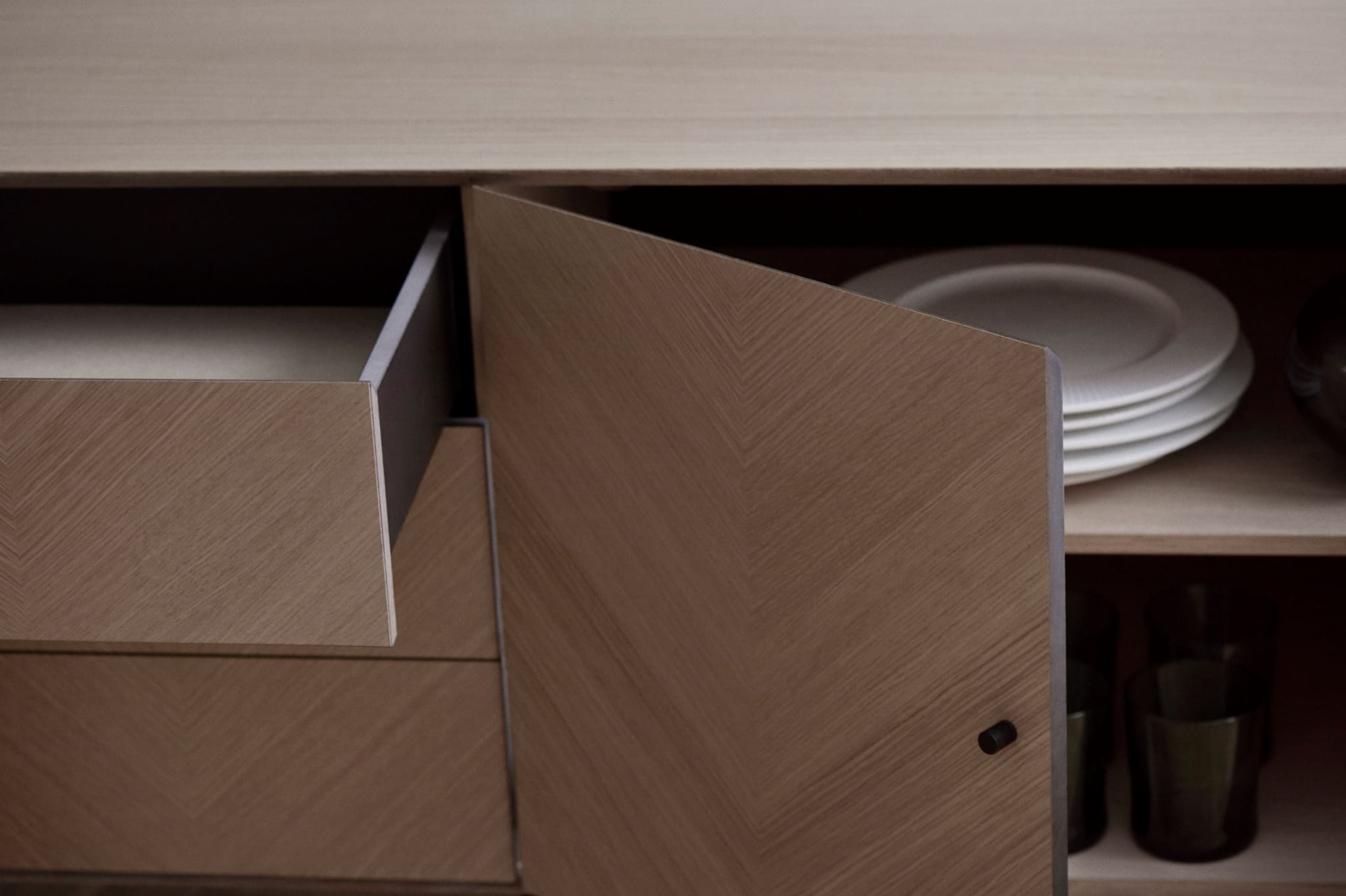 Szafka wisząca pod tv/hi-fi LUXE od marki BOLIA to wyjątkowy mebel stworzony do przechowywania i eksponowania. Piękny, jodełkowy wzór drewnianego forniru dostępnego w 3 wybarwieniach ociepli wnętrze, nadając mu jednocześnie skandynawskiego i szalenie eleganckiego klimatu rodem z lat 50. zgodnego z estetyką mid-century modern. Możesz wybrać wśród dwóch wariantów: szafkę z drzwiczkami wykonanymi w całości z drewna lub taką, gdzie jedna z części zaopatrzona została we front z tkaniny, co pozwoli na jeszcze lepsze wykorzystanie możliwości twojego sprzętu grającego. W serii LUXE znajdziesz także komody i szafki wiszące dzięki czemu stworzyć będziesz mógł dopasowany do twoich potrzeb komplet.