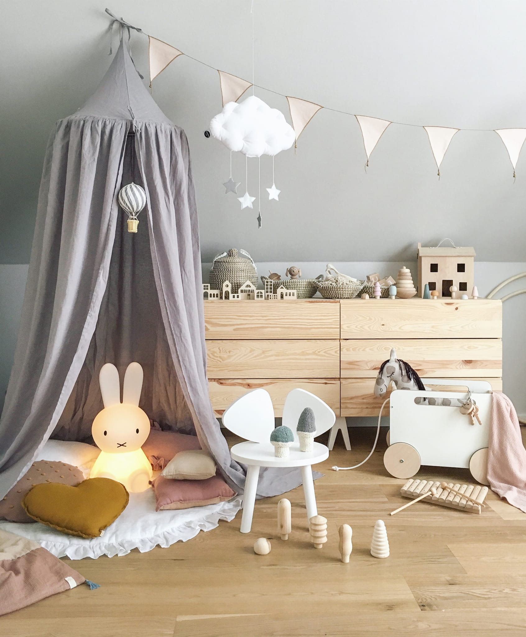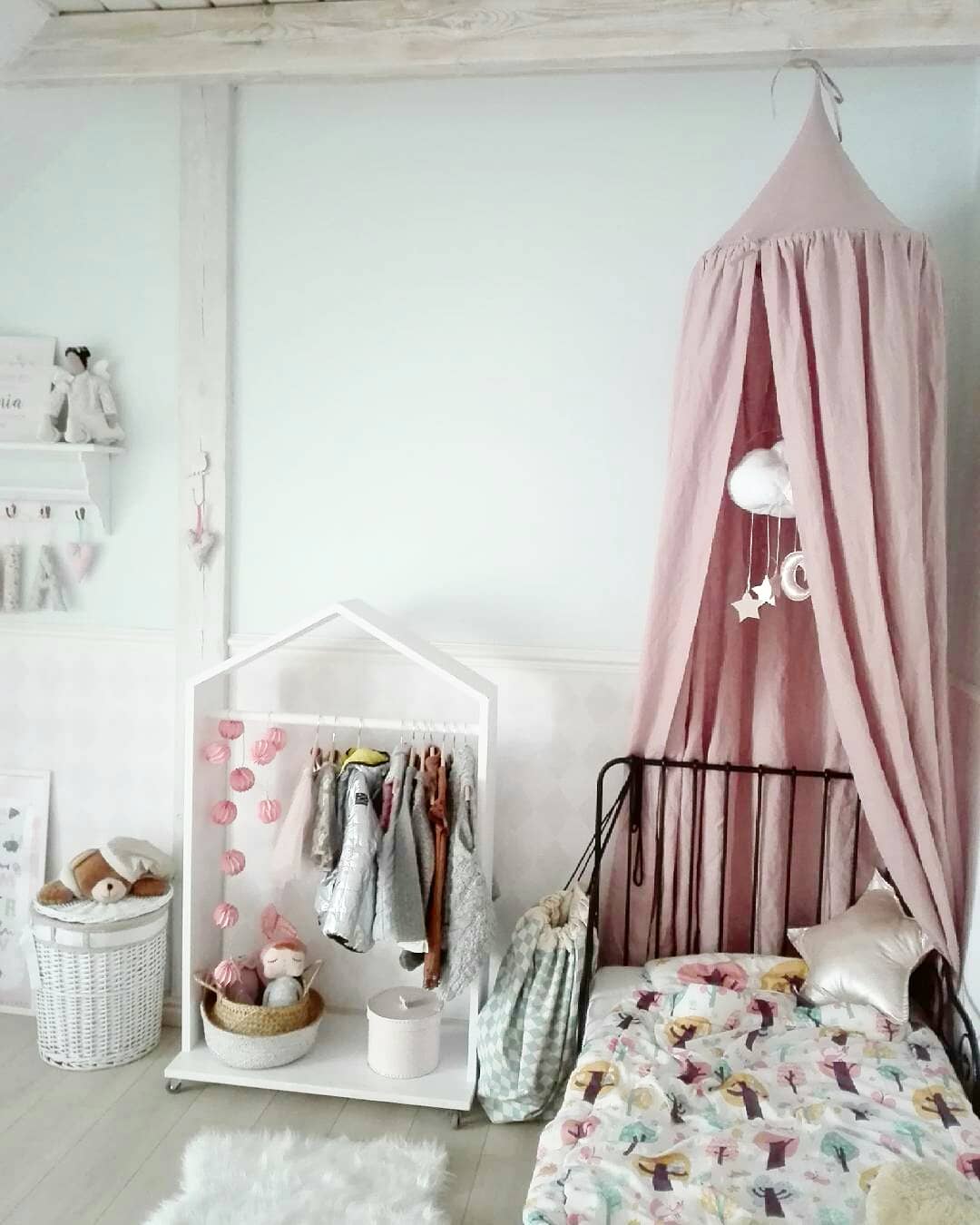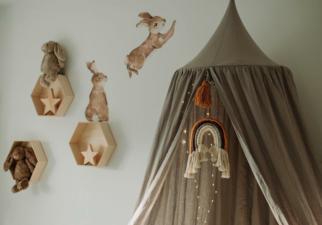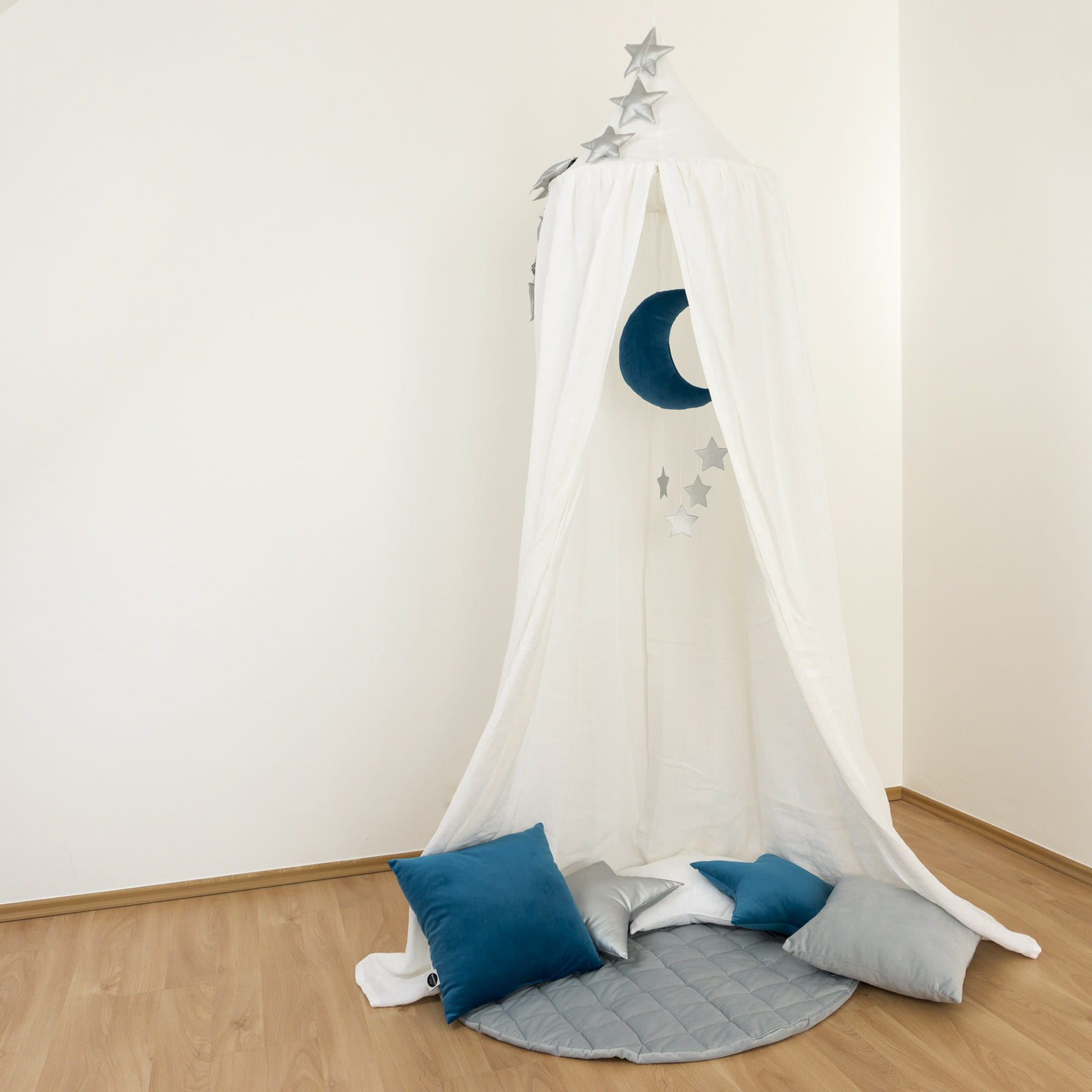 Baldachim to niezwykła dekoracja dziecięcego pokoju. Z pewnością zapewni dziecku wiele godzin wspaniałej zabawy przenosząc go w magiczny świat pełen przygód. Wykonany jest ze 100% lnu, który wykazuje działanie antybakteryjne i antyalergiczne, odrzuca brud i zanieczyszczenia, dzięki czemu jest idealny dla dzieci. Baldachim świetnie sprawdzi się jako wiszący namiot, baldachim nad łóżko lub osobno w połączeniu z miękką matą do zabawy. Baldachim Nukko pomoże Ci stworzyć wyjątkowy kącik zabaw i odpoczynku dla Twojego dziecka. Nada wnętrzu niepowtarzalnego uroku.