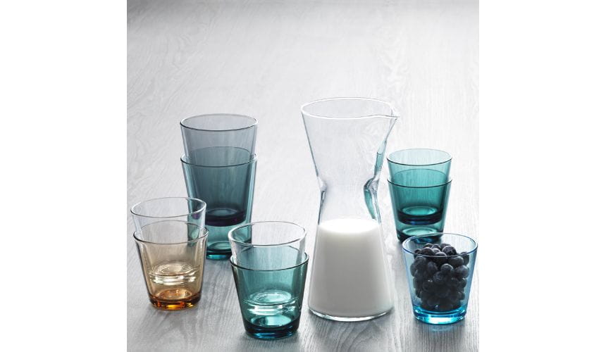 Fińska firma iittala produkuje te proste szklanki Kartio, co przyniosło całej kolekcji trwałe miejsce w historii designu oraz we współczesnych domach, dzięki geometrycznym kształtom i wielu czarującym kolorom.