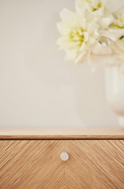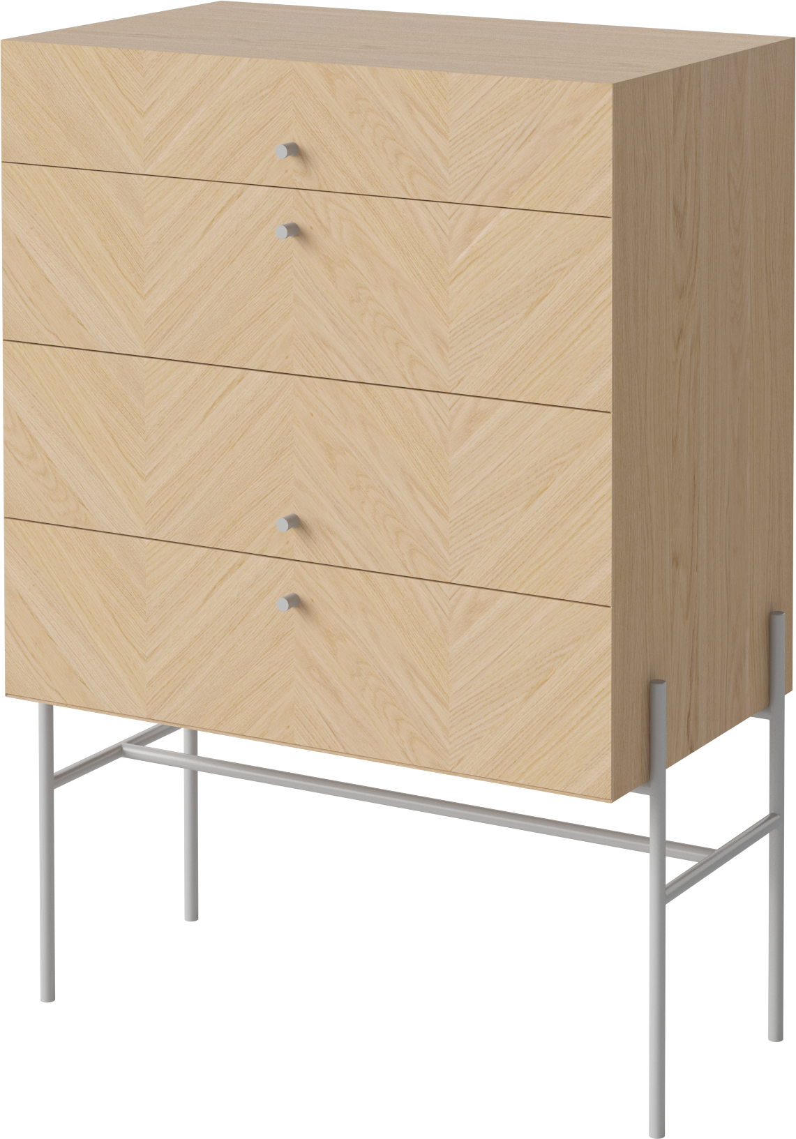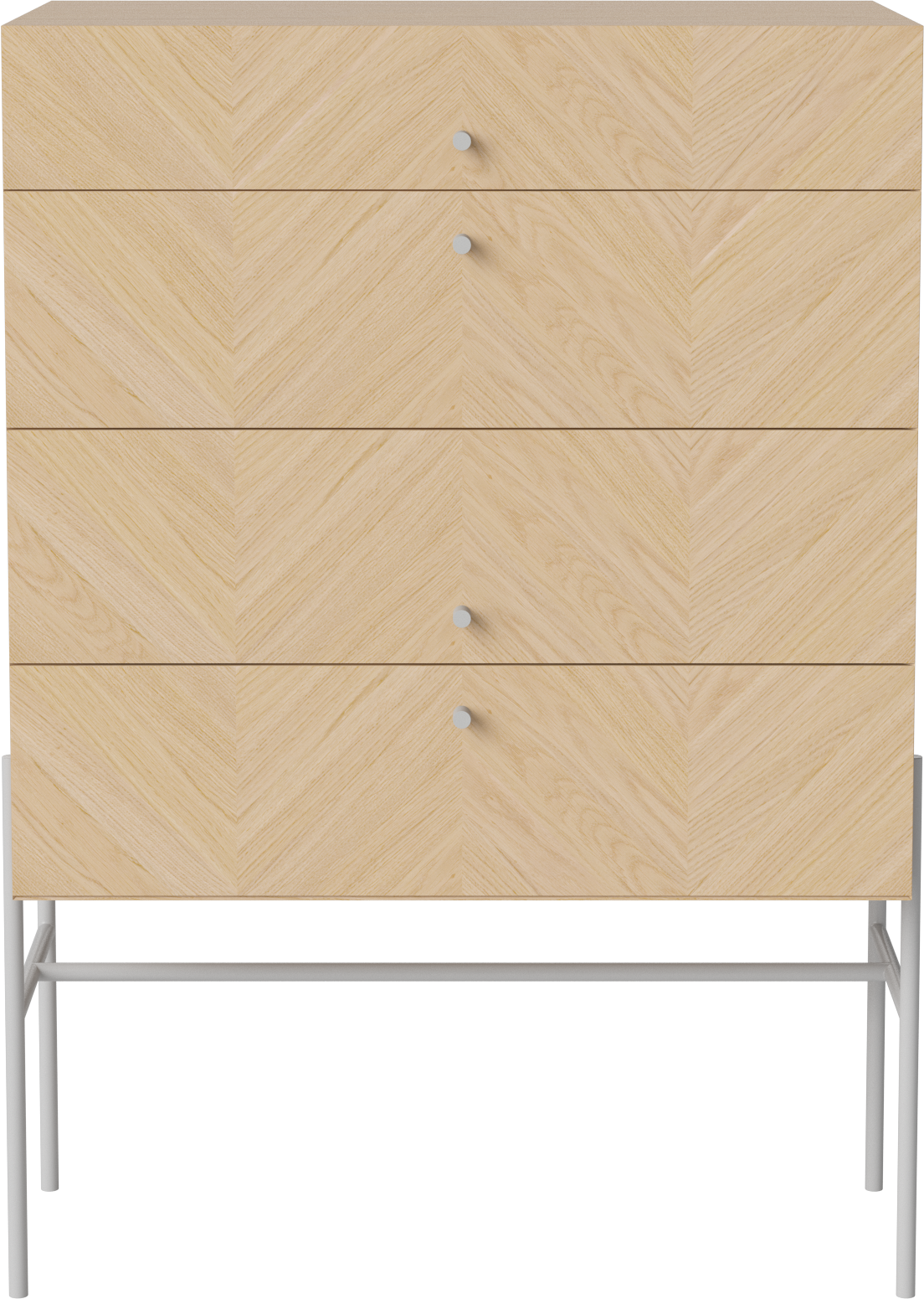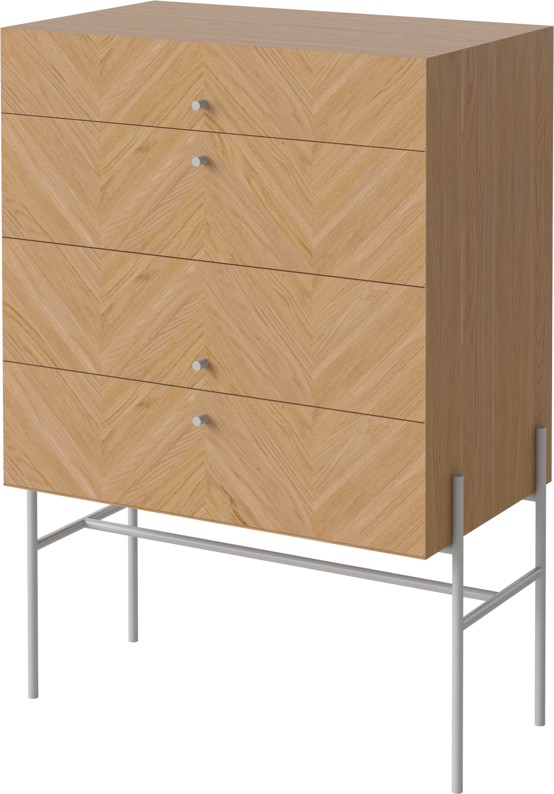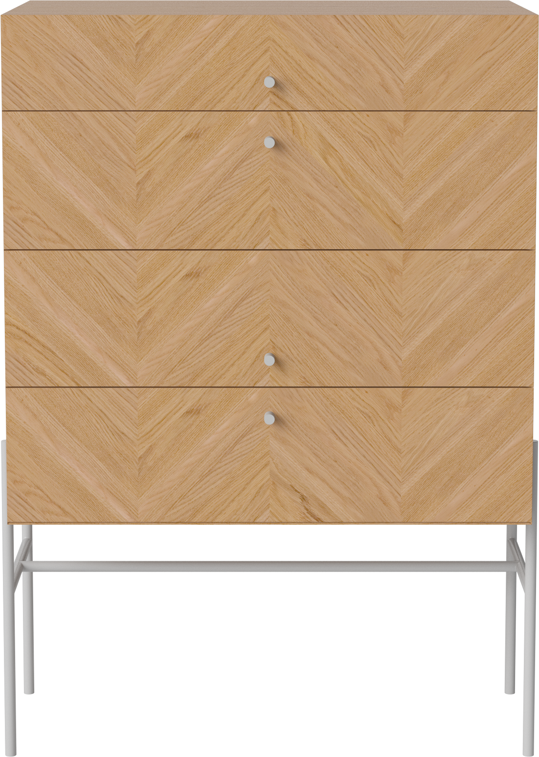 Komoda LUXE od marki BOLIA to wyjątkowy mebel stworzony do przechowywania i eksponowania. Delikatna, geometryczna forma wsparta na stalowych, smukłych nóżkach wyśmienicie prezentować będzie się w każdej sypialni i garderobie, holu i w salonie wprowadzając do nich lekkość i styl. W pojemnych szufladach zmieścisz wszystkie istotne dla ciebie przedmioty - ubrania, dodatki czy dokumenty. Na górnym blacie z powodzeniem postawisz natomiast doniczkę z ulubionym kwiatem, ramki ze zdjęciami czy stworzysz dekoracyjną kompozycję. Piękny, jodełkowy wzór drewnianego forniru dostępnego w 3 wybarwieniach ociepli wnętrze, nadając mu jednocześnie skandynawskiego i szalenie eleganckiego klimatu rodem z lat 50. zgodnego z estetyką mid-century modern. Możesz wybrać wśród dwóch wariantów: komodę na niskich lub na wysokich nóżkach. W serii LUXE znajdziesz także szafki nocne i pod tv oraz szafki wiszące dzięki czemu stworzyć będziesz mógł dopasowany do twoich potrzeb komplet.