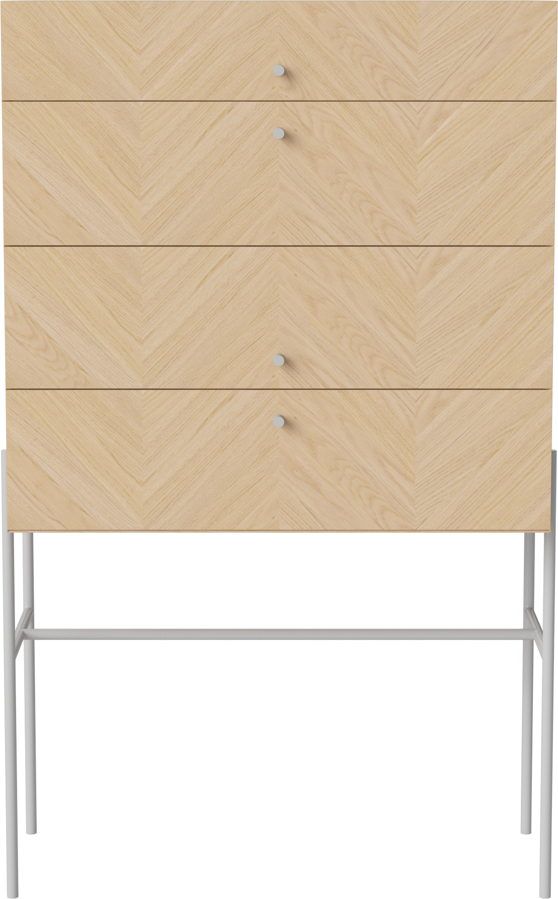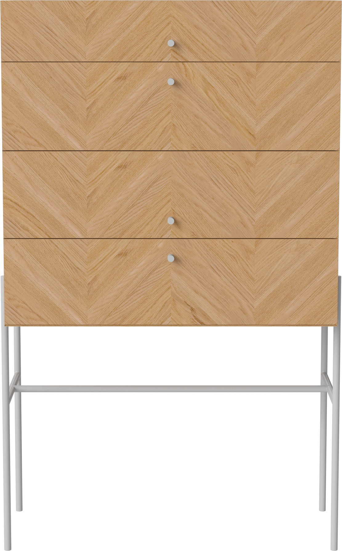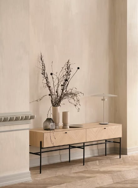 Komoda LUXE od marki BOLIA to wyjątkowy mebel stworzony do przechowywania i eksponowania. Delikatna, geometryczna forma wsparta na stalowych, smukłych nóżkach wyśmienicie prezentować będzie się w każdej sypialni i garderobie, holu i w salonie wprowadzając do nich lekkość i styl. W pojemnych szufladach zmieścisz wszystkie istotne dla ciebie przedmioty - ubrania, dodatki czy dokumenty. Na górnym blacie z powodzeniem postawisz natomiast doniczkę z ulubionym kwiatem, ramki ze zdjęciami czy stworzysz dekoracyjną kompozycję. Piękny, jodełkowy wzór drewnianego forniru dostępnego w 3 wybarwieniach ociepli wnętrze, nadając mu jednocześnie skandynawskiego i szalenie eleganckiego klimatu rodem z lat 50. zgodnego z estetyką mid-century modern. Możesz wybrać wśród dwóch wariantów: komodę na niskich lub na wysokich nóżkach. W serii LUXE znajdziesz także szafki nocne i pod tv oraz szafki wiszące dzięki czemu stworzyć będziesz mógł dopasowany do twoich potrzeb komplet.