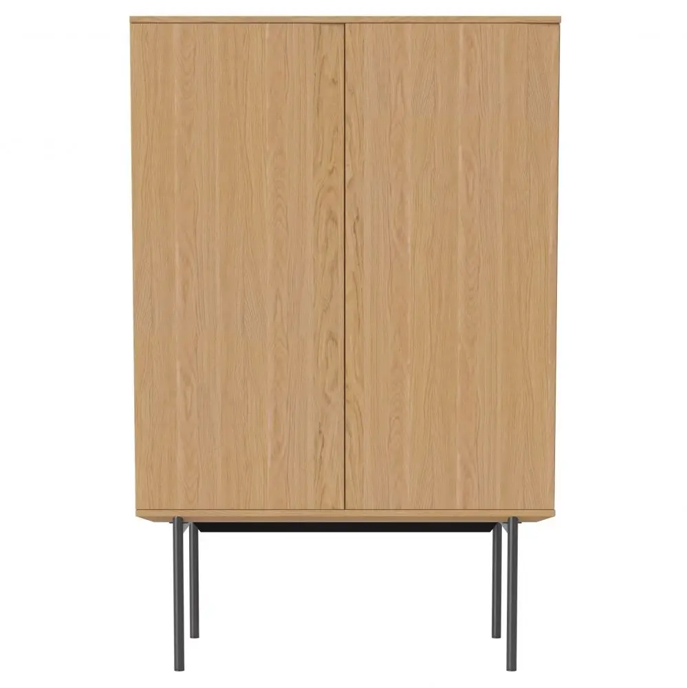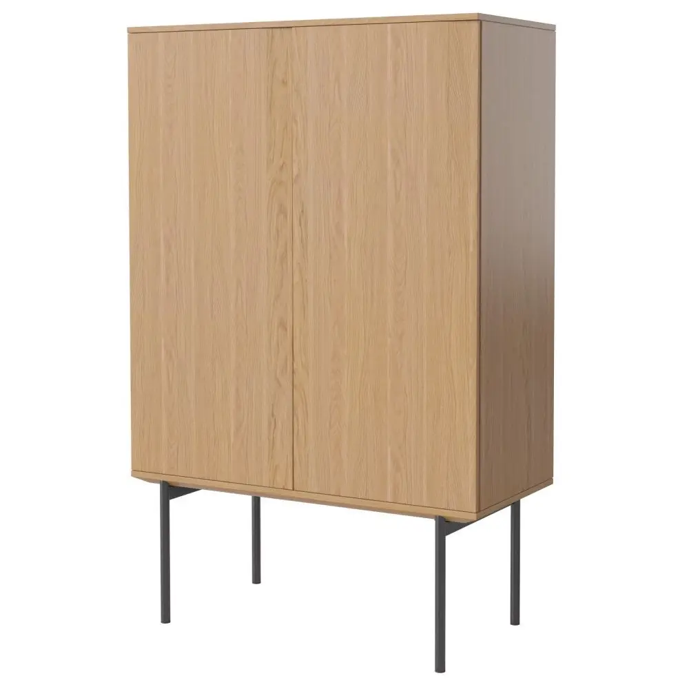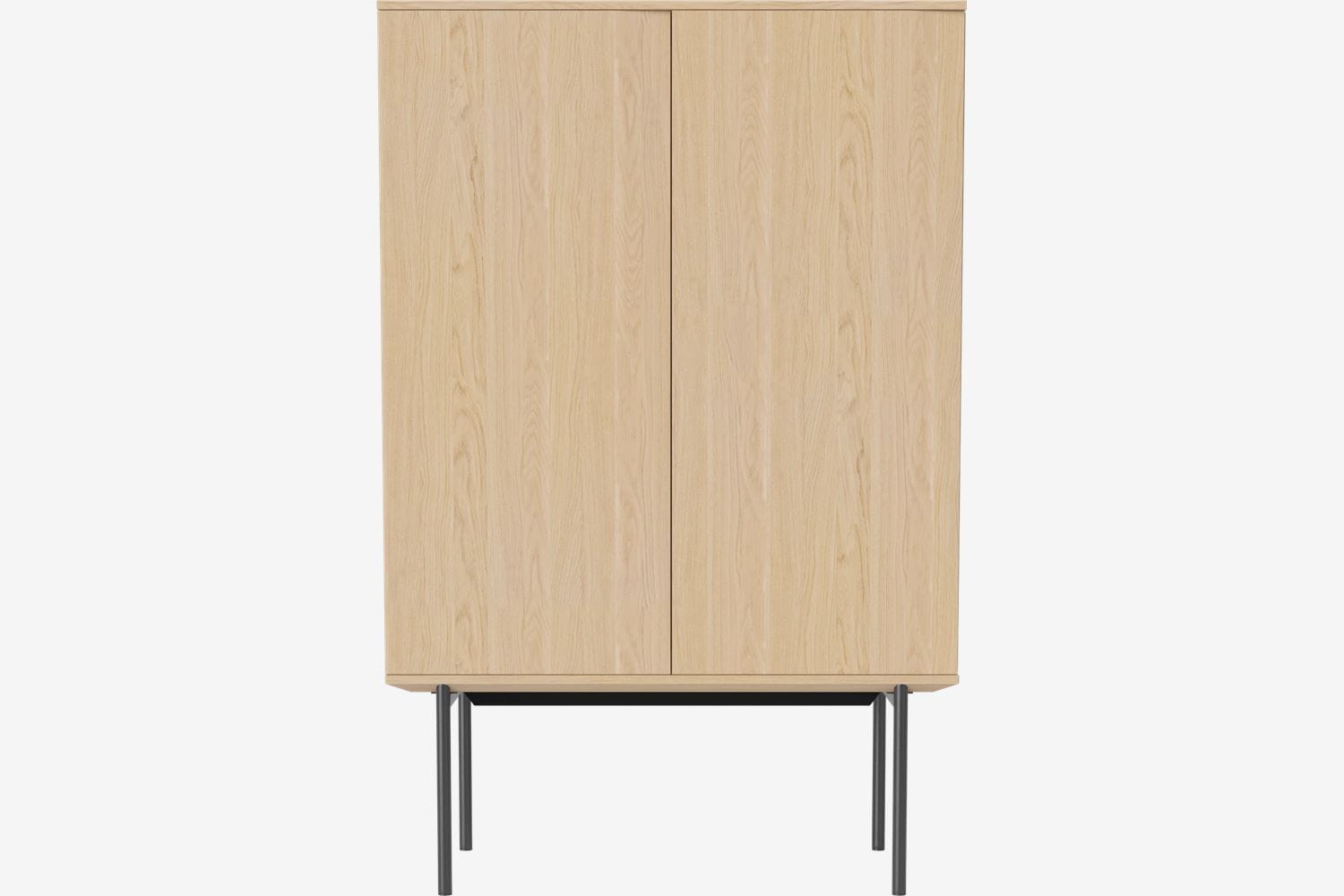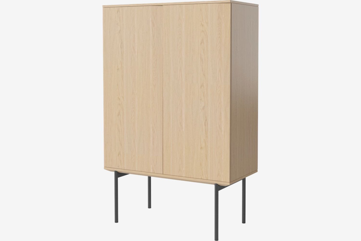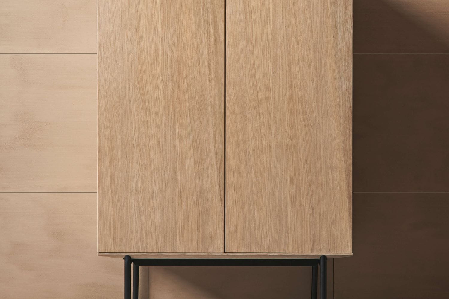Silent to minimalistyczna gama kredensów unoszona przez lekką, stalową ramę. Drzwi komody łączy kunszt prawdziwego drewna, w którym ten naturalny surowiec jest ścinany ukośnie, aby stworzyć wrażenie, że mebel składa się z dwóch różnych gatunków drewna.