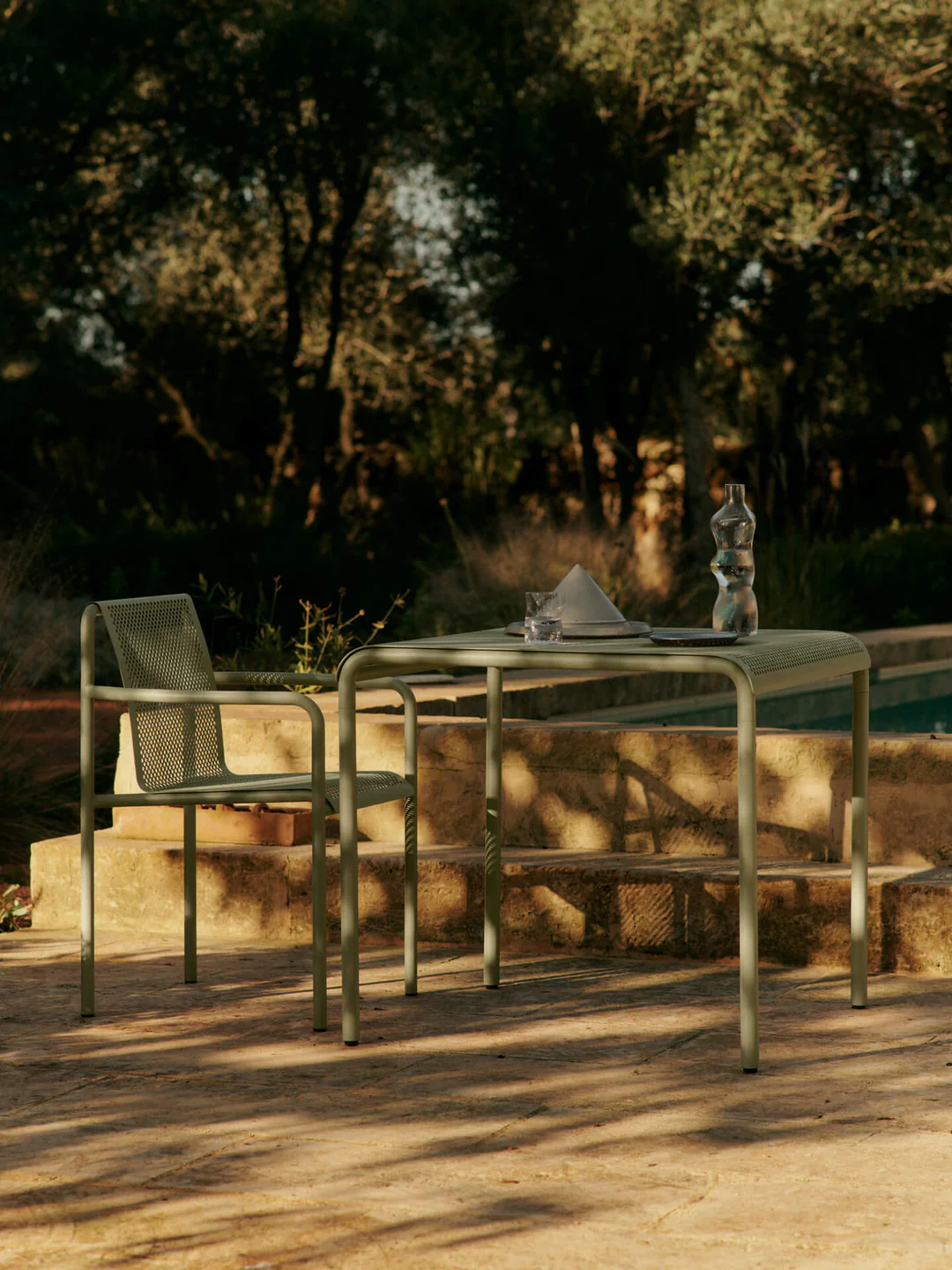 Zainspirowana pięknem światła słonecznego przesączającego się przez liście, kolekcja Dapple wprowadza poczucie spokoju do przestrzeni zewnętrznych. Krzesło Dapple z podłokietnikami jest wykonane z malowanej proszkowo stali ocynkowanej, która zapewnia trwałość i ochronę przed warunkami atmosferycznymi, zachowując jednocześnie elegancką estetykę. Wyposażone w podłokietniki do wygodnego rozkładania, to sztaplowane krzesło jest prostym, ale efektownym dodatkiem do Twojej przestrzeni na zewnątrz.