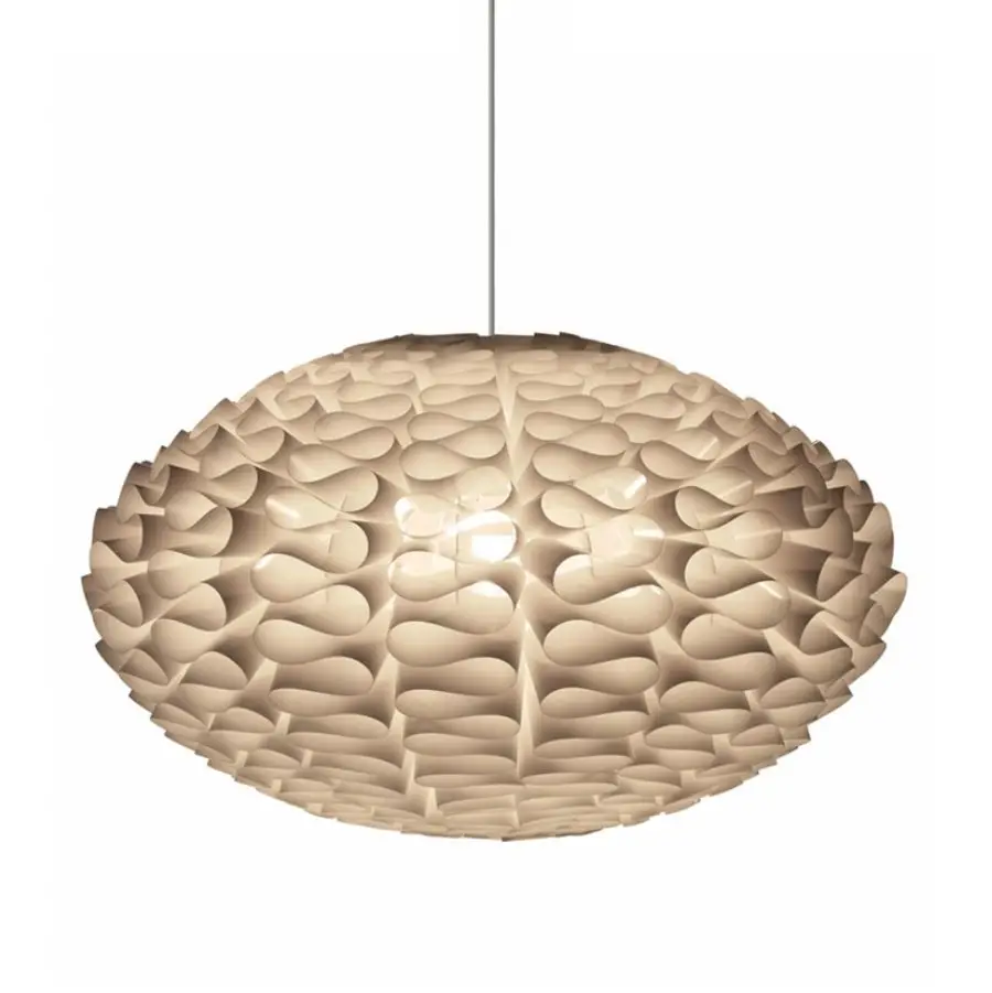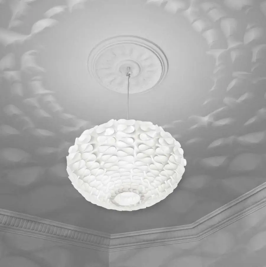 Ta wyjątkowa lampa została wykonana z ognioodpornego i wodoodpornego tworzywa sztucznego. Przeznaczona jest do samodzielnego złożenia zgodnie z dołączoną do zestawu instrukcją. Do montażu nie potrzebujemy narzędzi czy też kleju. Lampa zasilana jest żarówką o max. mocy do 60W lub o większej mocy przy żarówce energooszczędnej. W dostarczanym zestawie znajduje się tylko klosz. Plastikowy przewód z oprawką e27 lub przewód z oprawką e27 i podsufitką można zakupić oddzielnie.