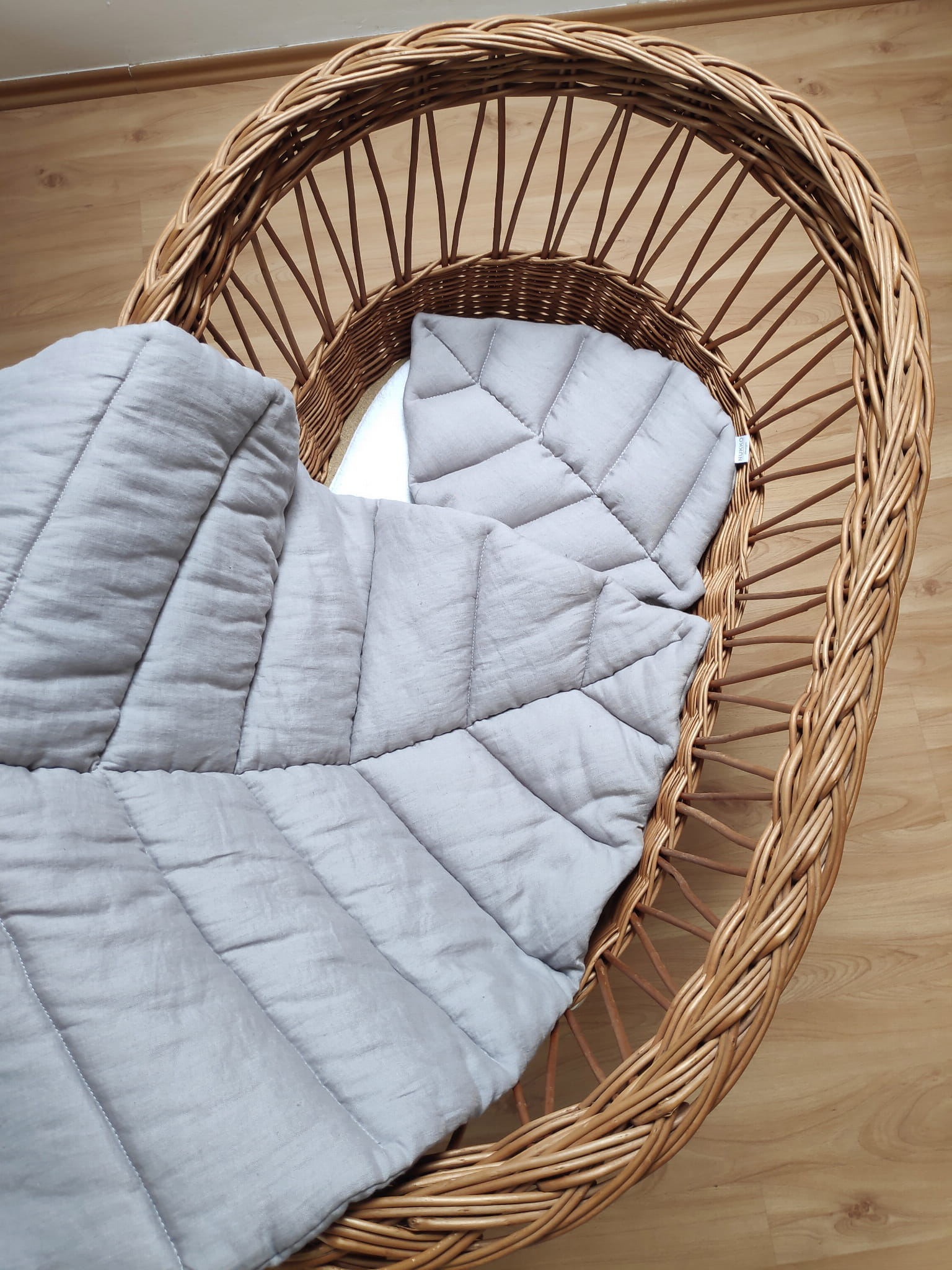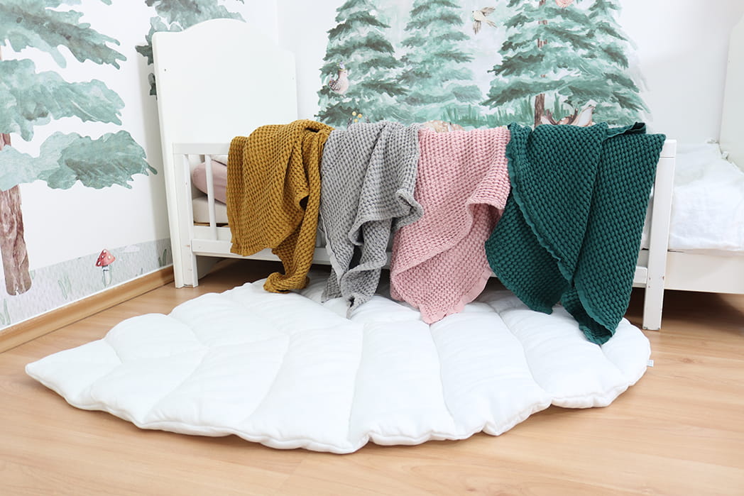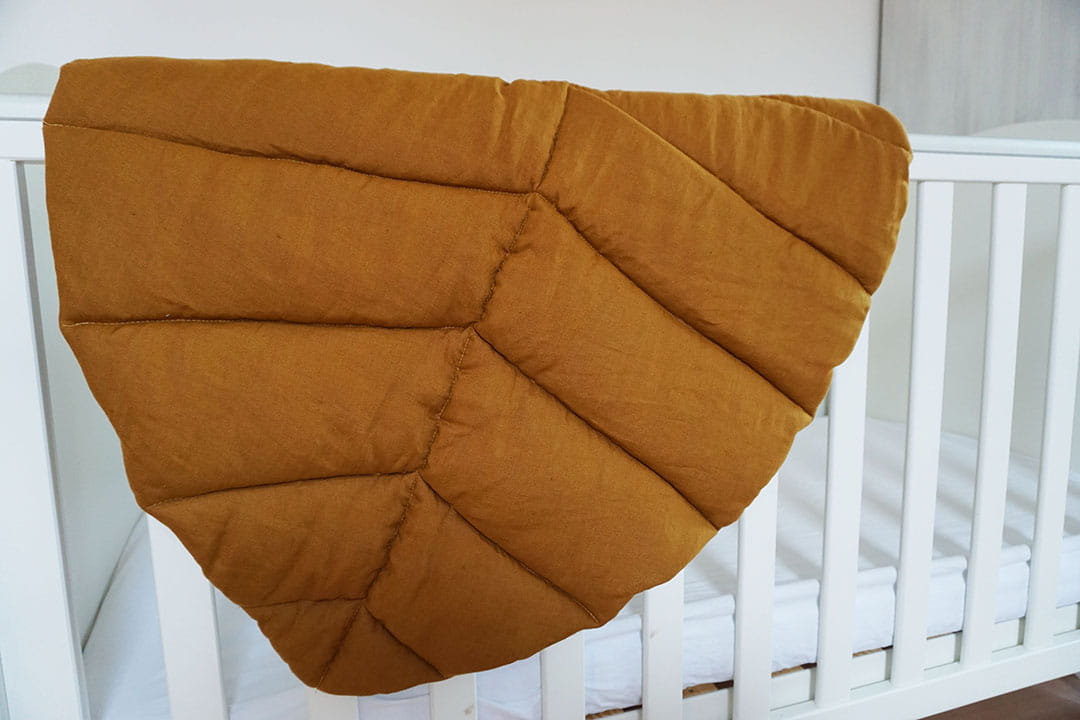 Miękka lniana mata do zabawy w kształcie liścia doda uroku każdemu wnętrzu. Sprawdzi się już od pierwszych dni życia maluszka jako mata do leżenia na brzuszku, gdyż posiada grube wypełnienie, które świetnie izoluje od twardej i zimnej podłogi. Mata wykonana jest z naturalnego lnu o właściwościach antyalergicznych i antybakteryjnych, więc jest idealna nawet dla alergików. Sprawdzi się również dla starszaka jako mata pod baldachim, do tipi, w kąciku do czytania lub przy łóżku.