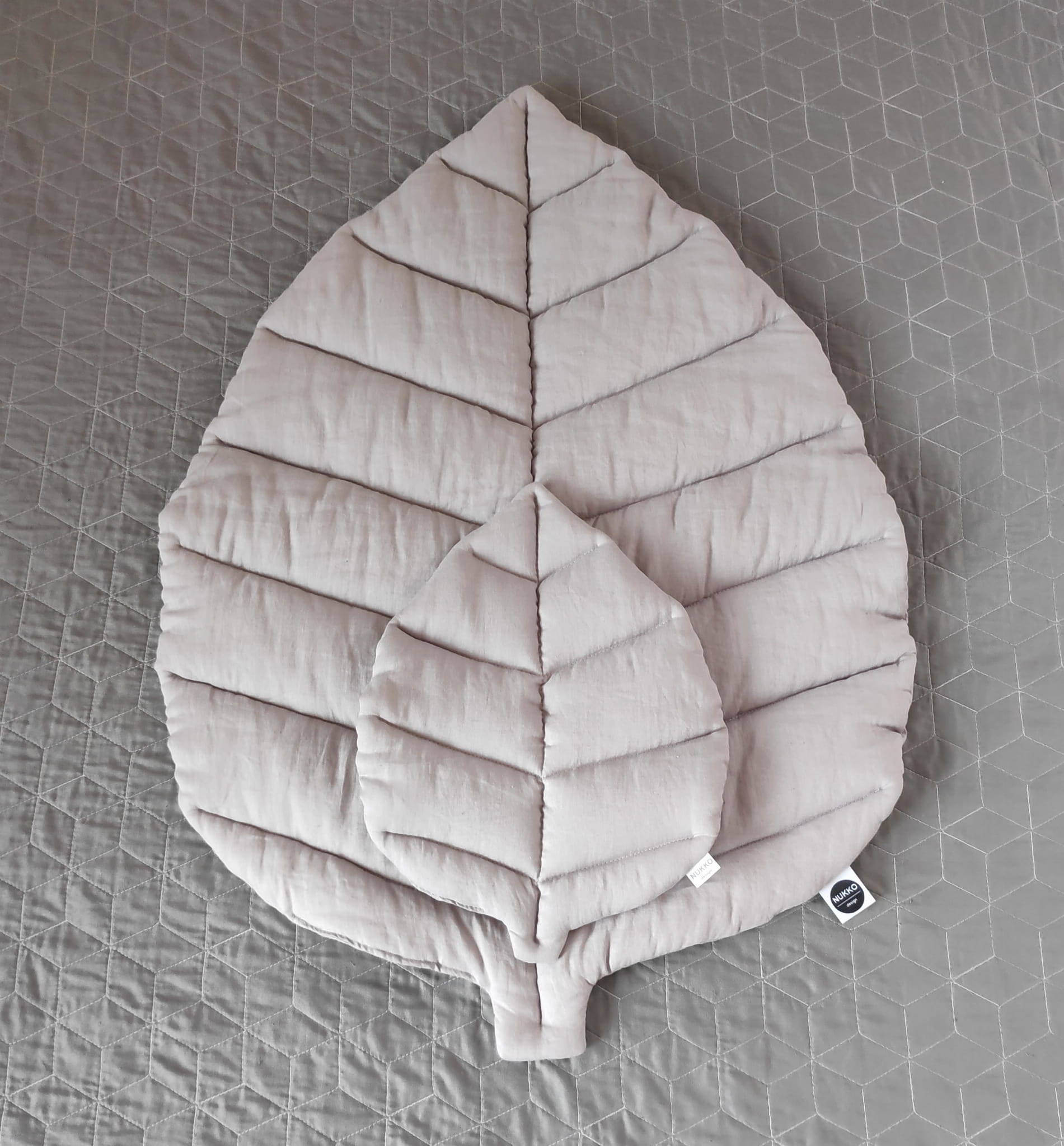 Do maty można dobrać płaską poduszkę w kształcie liścia, idealną do gondoli, kosza Mojżesza lub kołyski.>>> oraz drewniane eco gryzaki>>>