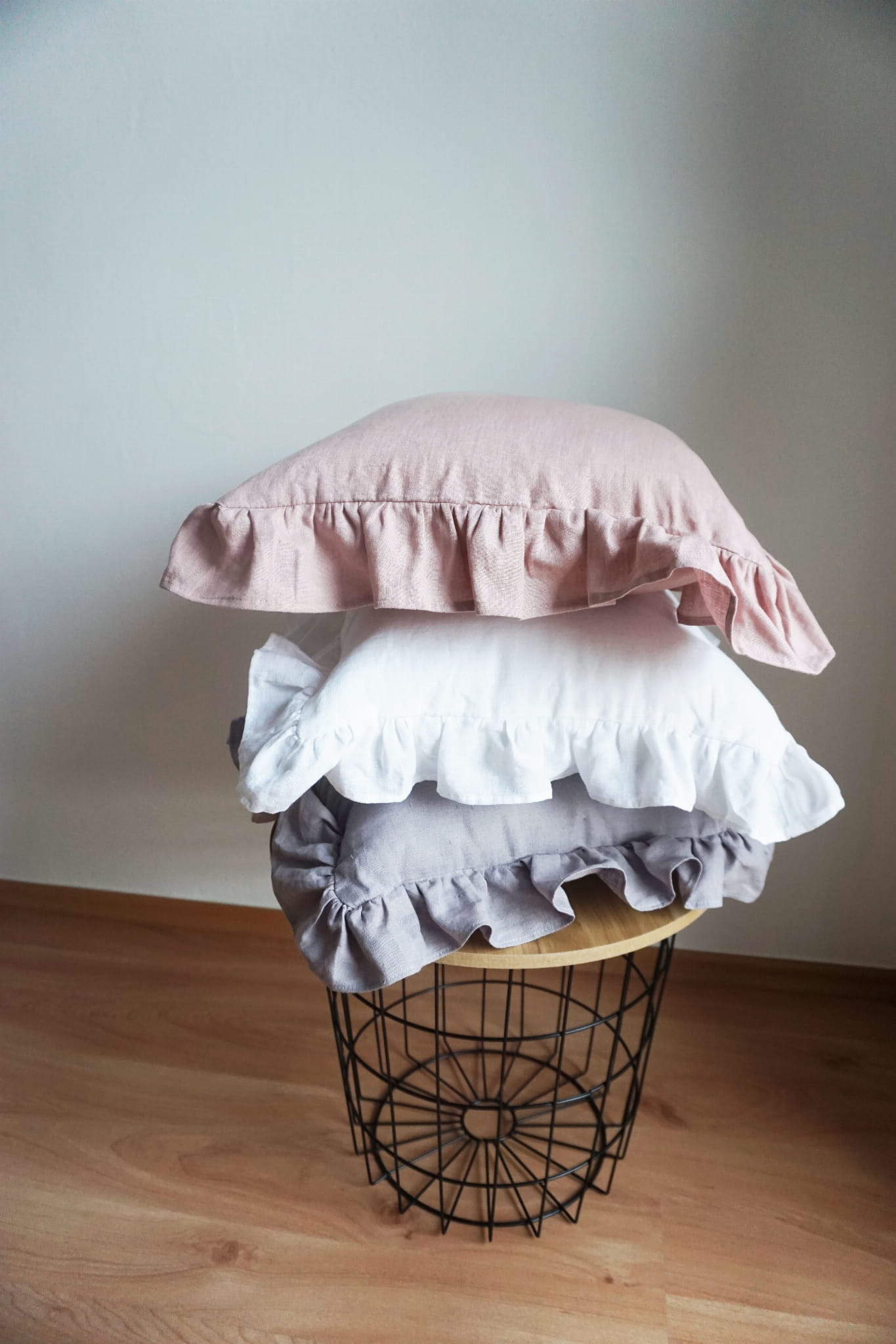 Lniana poduszka z falbanką Nukko Design różne kolory