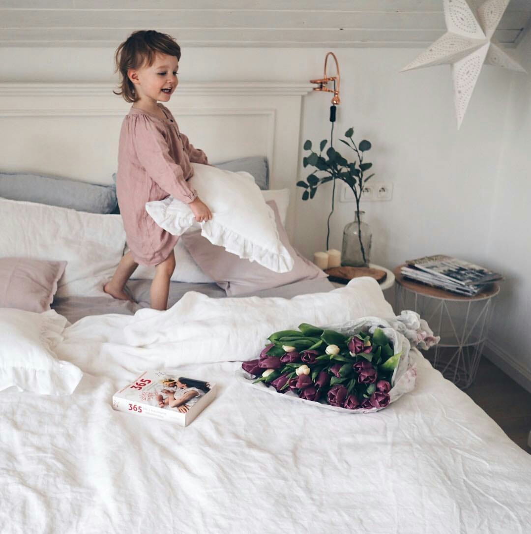 Jak dbać: poszewkę prać w 40 stopniach, delikatny program, delikatne wirowanie, nie stosować wybielaczy, nie prasować.