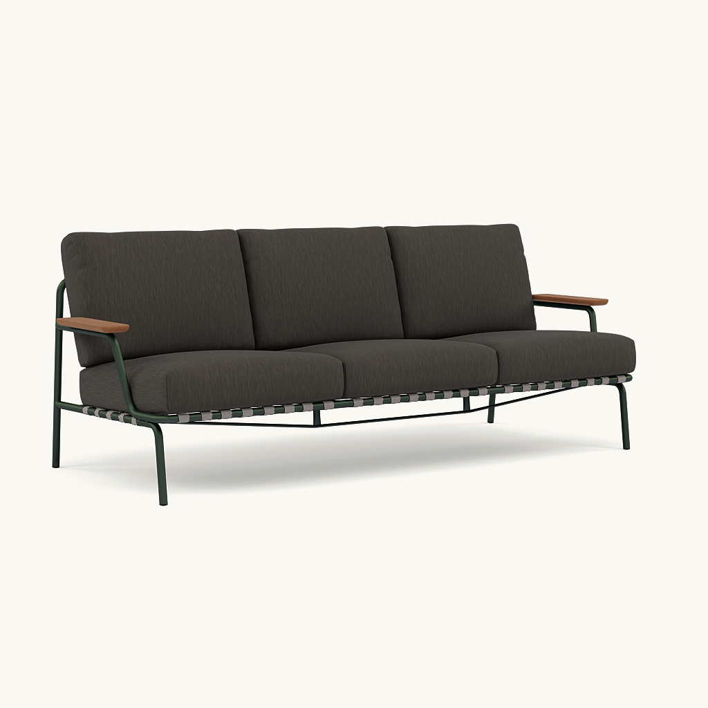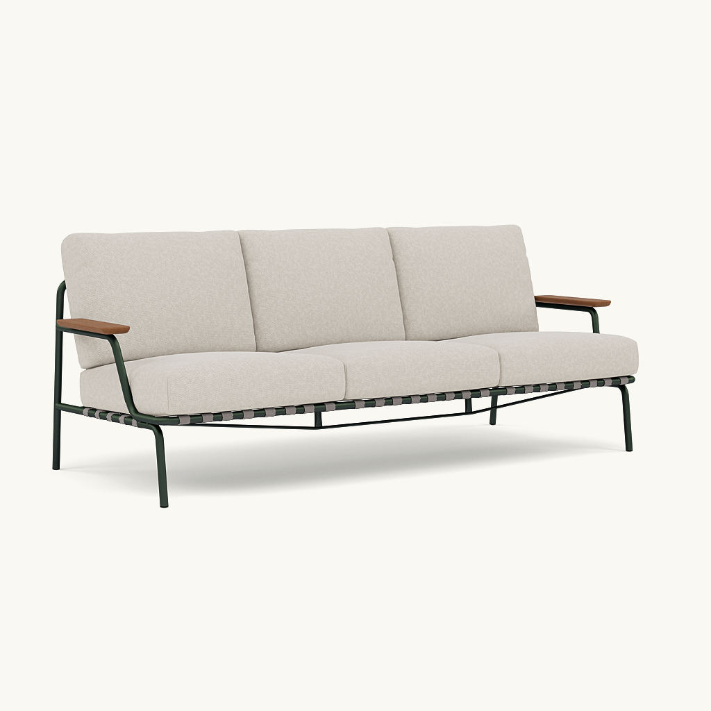 Sofa ogrodowa Settle Outdoor, czyli wygodne i stylowe rozwiązanie. Stalowa rama jest ocynkowana, zagruntowana i pokryta proszkowo, co zapewnia odporność na korozję w celu długotrwałego użytkowania. Pluszowe poduszki, wykonane są z szybkoschnącej pianki i trwałych tekstyliów zewnętrznych. Produkt zyskuje na trwałości jeszcze bardziej kiedy dokupimy pokrowiec, który chorni mebel poza sezonem.