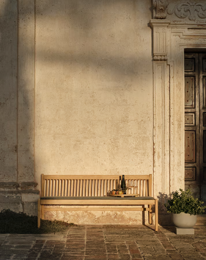 Klasyczna ławka do odpoczynku i relaksu. Wykonana z solidnego, certyfikowanego przez FSC™ teaku, zewnętrzna ławka Patio zaprasza do zatrzymania się i cieszenia się cichymi chwilami w ogrodzie – niezależnie od tego, czy umieszczona jest pod drzewem, w przytulnym kącie, czy jako część strefy wypoczynkowej. Dostępny w dwóch rozmiarach, idealnie uzupełniając zewnętrzny stół jadalny na patio, oferuje zarówno komfort, jak i ponadczasową skandynawską trwałość. Z biegiem pór roku tekowy naturalnie zyskuje łagodną, szarą patynę, jeśli nie jest zabiegany, co dodaje charakteru i pięknego, zwietrzałego wyglądu. Dzięki dopasowanym poduszkom ta ławka jest idealna na spotkania na świeżym powietrzu – zaprojektowana tak, by bez wysiłku wtapiać się w resztę serii Patio.