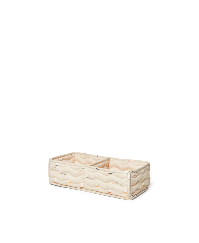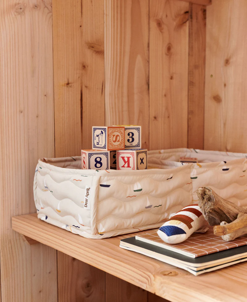 Ten uroczy kosz do przechowywania charakteryzuje się miękkim, falowanym pikowaniem i praktycznymi przegródkami – idealny do uporządkowania rzeczy na przewijaku, obok poduszki do przewijania Dear April. Idealnie pasuje również do szuflad, pomagając utrzymać porządek w ubrankach, pieluchach i innych niezbędnych rzeczach dla Twojego malucha. Zaprojektowany tak, aby idealnie pasował do szuflad komód dziecięcych Oliver Furniture.