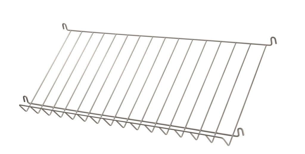 Metalowa, perforowana półka na buty do budowy regału String. Wersje dłuższa i krótsza