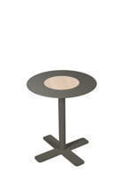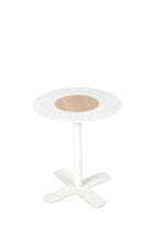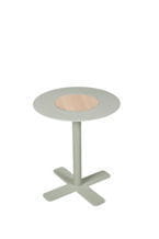 Stolik okrągły Blush wykonany z metalu z drewnianym wykończeniem z orzecha lub dębu, dostępny w wersji okrągłej i kwadratowej, w kilku wersjach kolorystycznych.