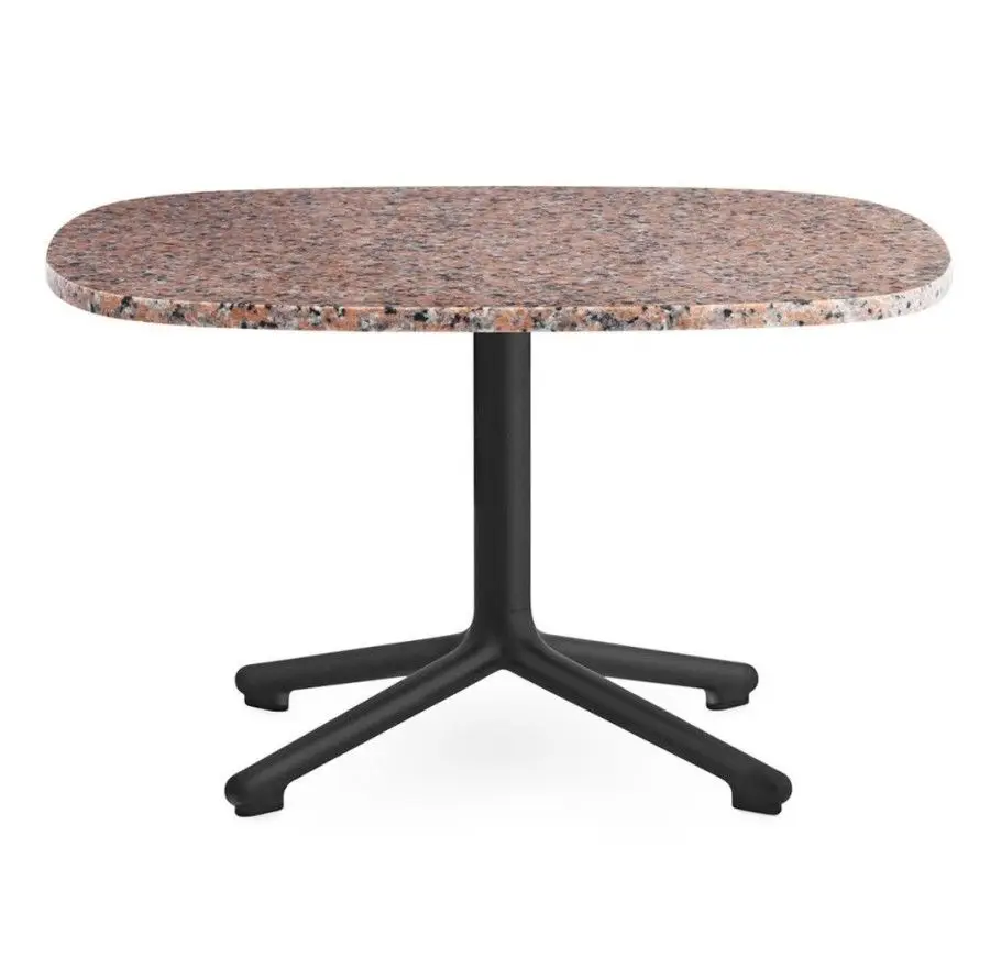 Stolik kawowy z serii Era marki Normann Copenhagen dostępny jest w 2 rozmiarach; 67,5X66 oraz 60X48,5 cm. Każdy z nich występuje w 3 odcieniach granitowego blatu (czarnym, różowym lub szarym) oraz z możliwością wyboru podstawy; aluminiowej lub lakierowanej na czarny kolor. Doskonale dopasuje się do różnych aranżacji odpowiadając tym samym na potrzeby tradycjonalistów jak i pasjonatów nieszablonowych rozwiązań aranżacyjnych.