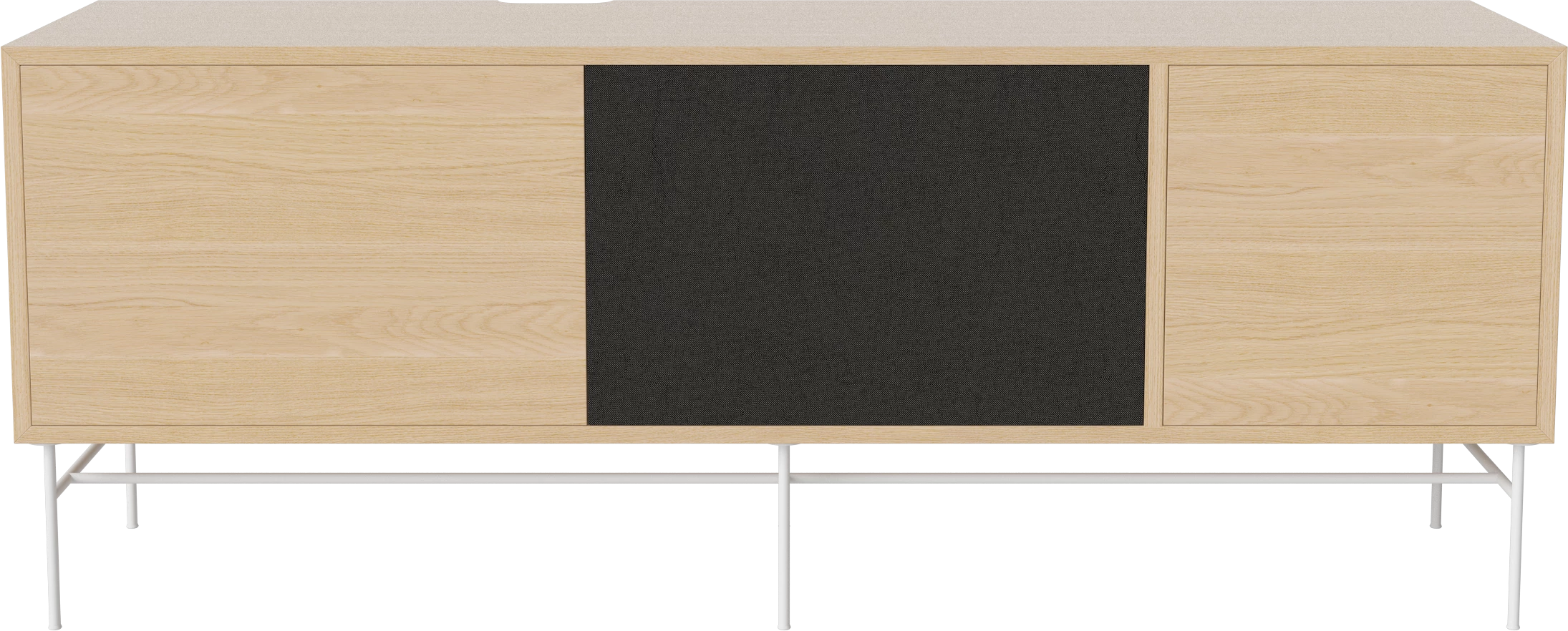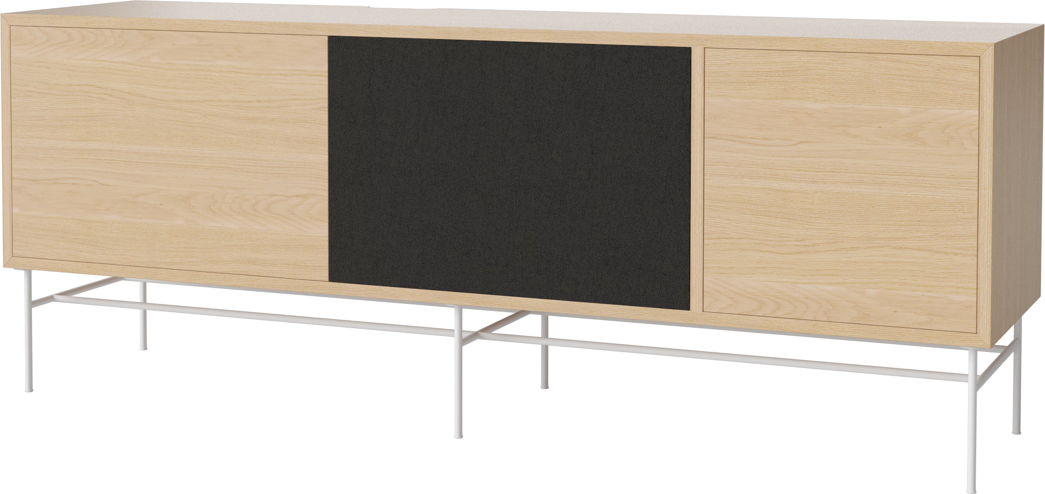 dąb bielony olejowany, biała podstawa, fronty czarna tkanina i dąb bielony