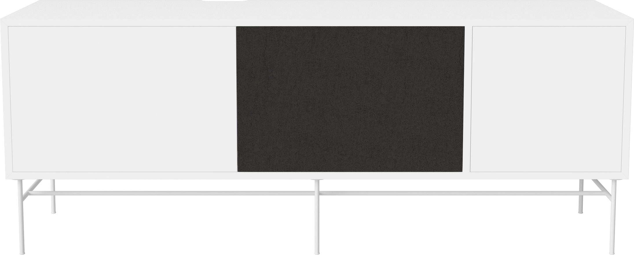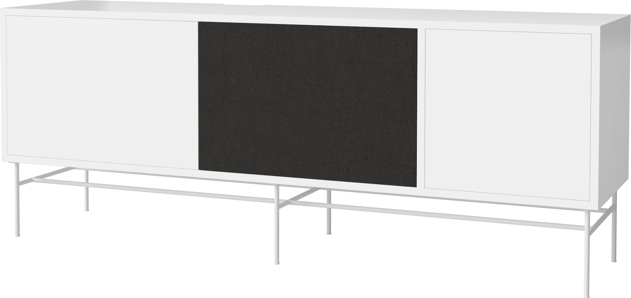 biały MDF, biała podstawa, fronty czarna tkanina i biały MDF