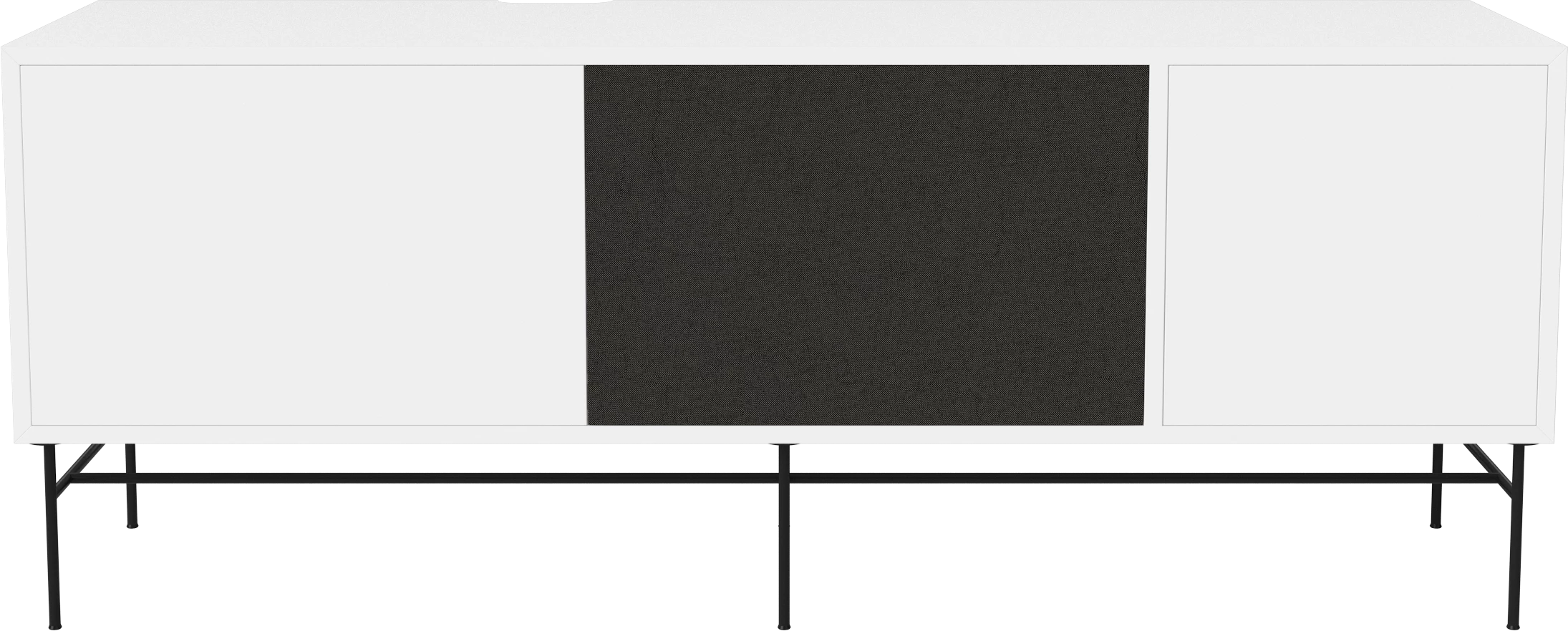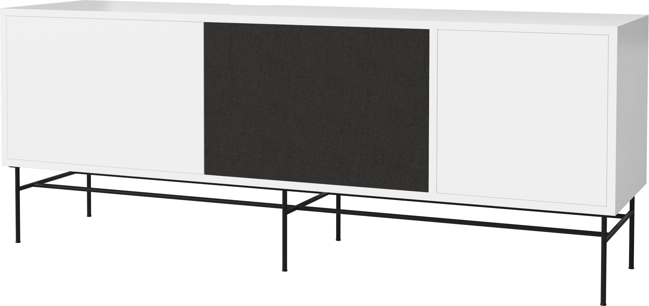 biały MDF, czarna podstawa, fronty czarna tkanina i biały MDF