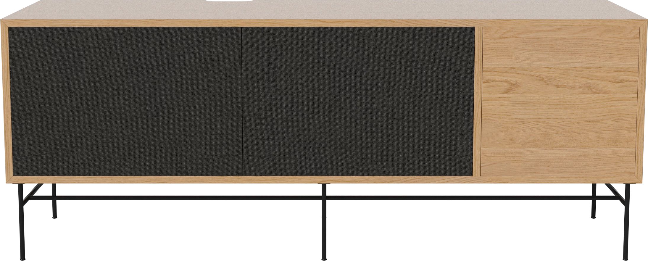 dąb naturalny olejowany, czarna podstawa, czarne fronty z tkaniny