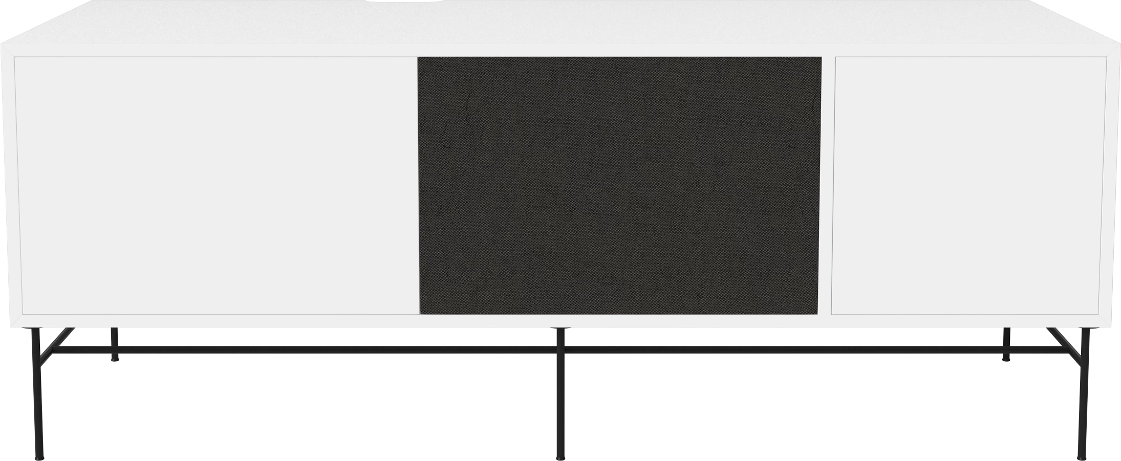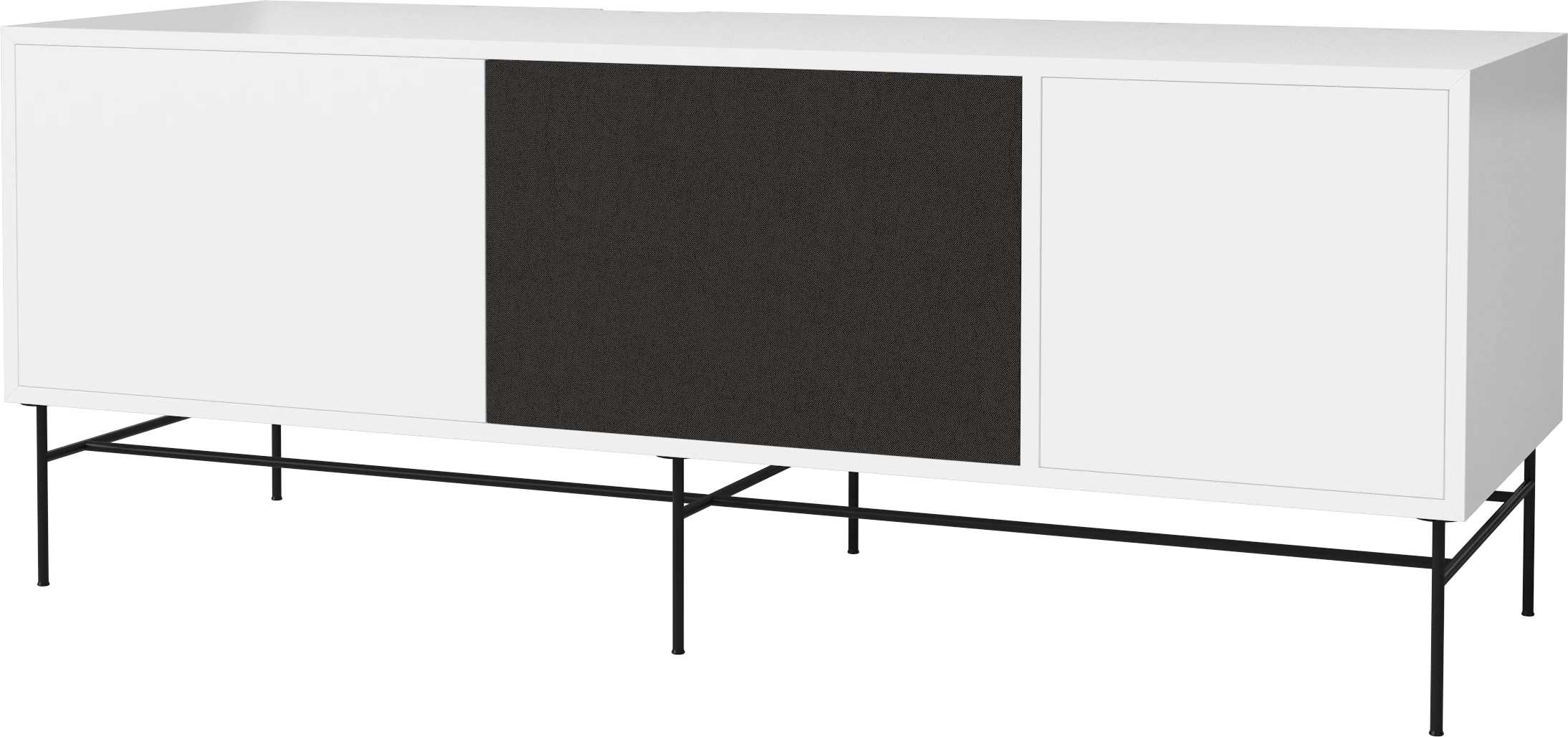 biały lakier, czarna podstawa, front czarna tkanina i biały MDF