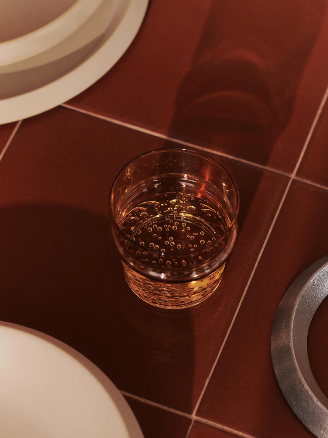 Szklanki Boya Low czerpią inspirację z boi i starożytnych śródziemnomorskich naczyń szklanych. Nazwane na cześć hiszpańskiego słowa „boja”, ich zabawny kształt dodaje uroku każdemu otoczeniu. Sprzedawane jako zestaw dwóch sztuk, każde z dmuchanych ustnie, jednolitych, kolorowych szklanek ma niepowtarzalny, rzemieślniczy charakter. Ich ciepłe, żywe odcienie przywołują ducha lata, a ich składana konstrukcja zapewnia praktyczność i łatwe przechowywanie.