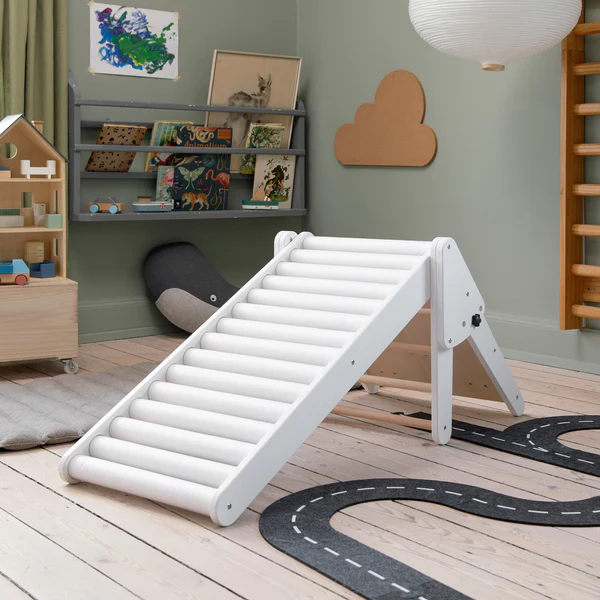 Wielofunkcyjna zjeżdżalnia rolkowa do łóżka Sebra, dzięki której położenie się spać i wstawanie będzie świetną zabawą. Miękkie rolki są przyjemne do zjeżdżania, gdy dziecko musi wstać z łóżka i zapewniają dobre wyzwanie motoryczne, gdy dziecko musi wspiąć się z powrotem.
